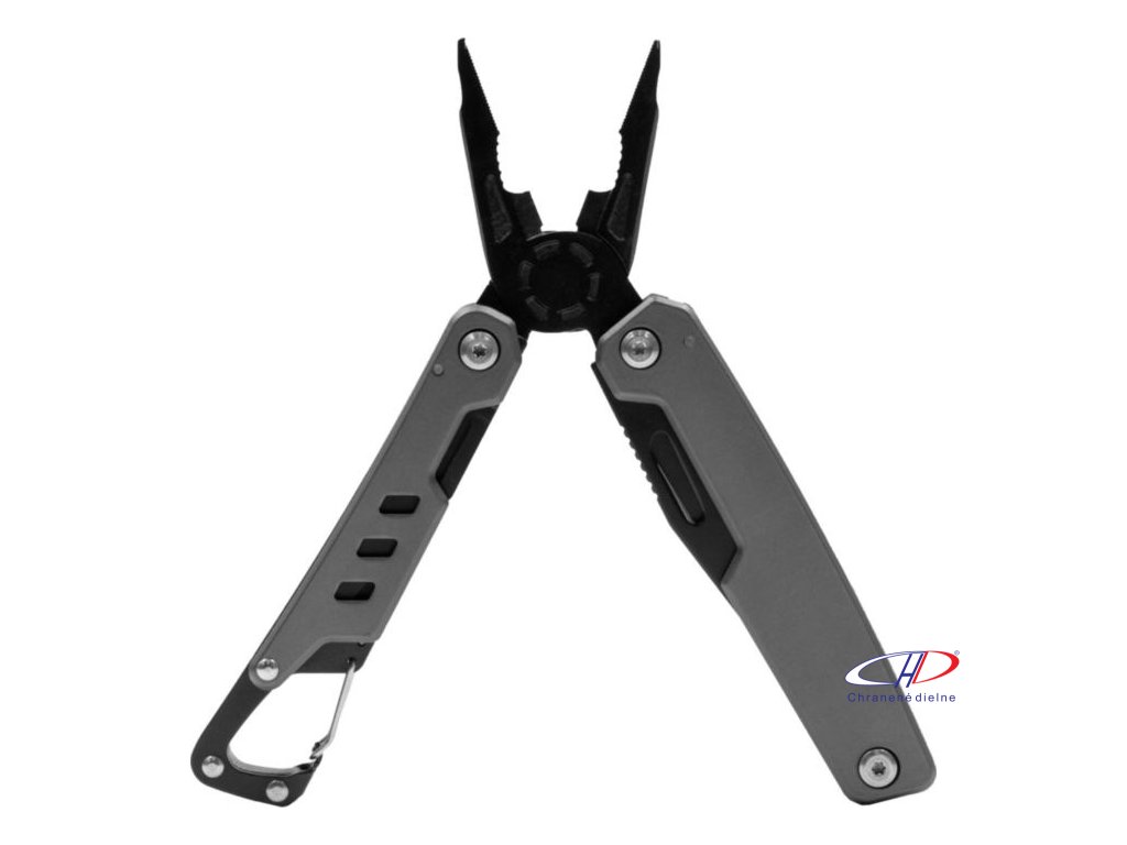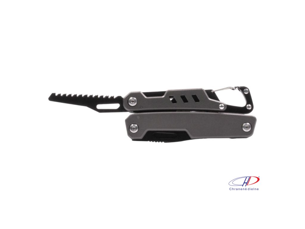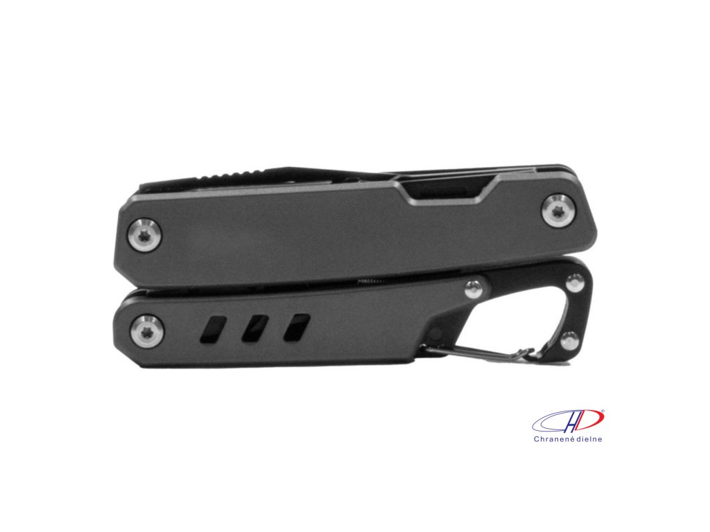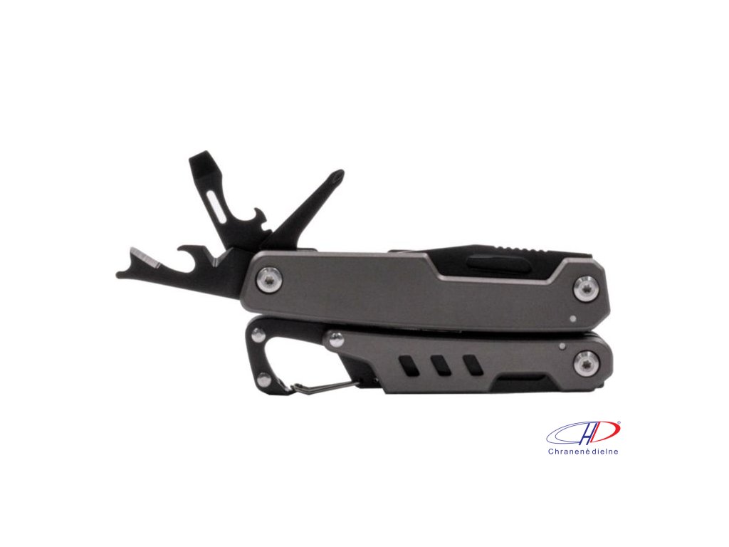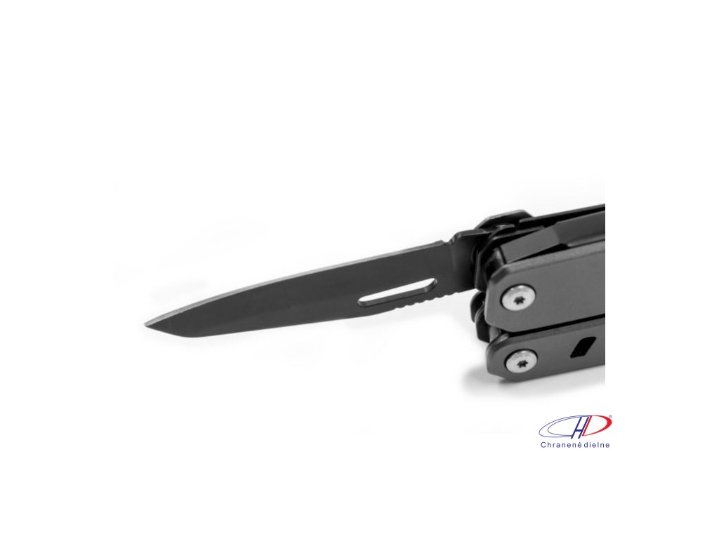 Multifunkčný nástroj z kalenej martenzitickej nerezovej ocele. Obsahuje otvárač, skrutkovače, rezač drôtu, kombinovaný nôž 3CR13, kliešte, pílku a pilník na drevo/kov, kľúč na kolesá, ohýbačku drôtu a pravítko. Balené v čiernej krabičke s puzdrom na opasok.Dodatočné parametre