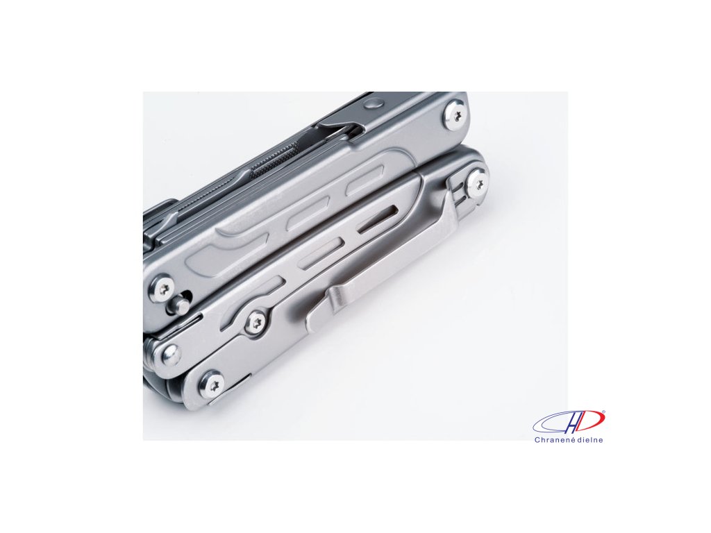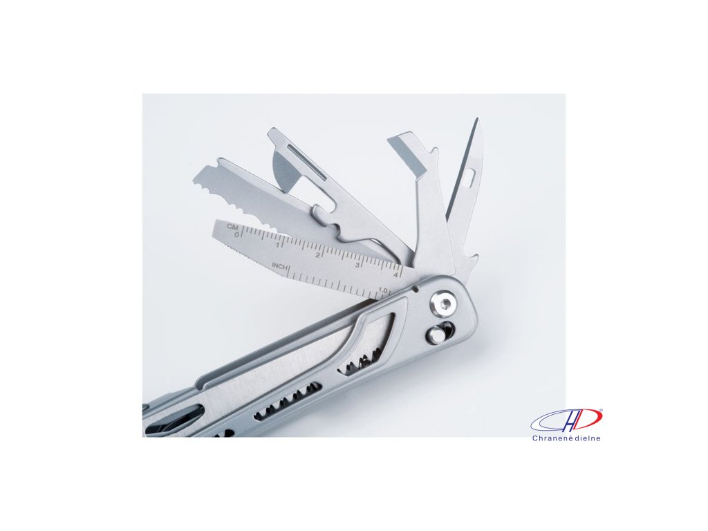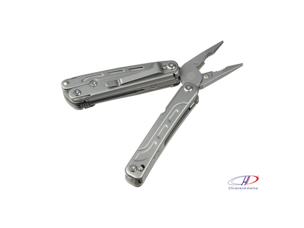 Multifunkčný nástroj CrisMa, 17-dielny, z nehrdzavejúcej ocele, s obsahom rôznych nástrojov ako kliešte, nôž, pílka, nožnice, skrutkovače a pod., s praktickou sponou na pripevnenie k opasku.Dodatočné parametre
