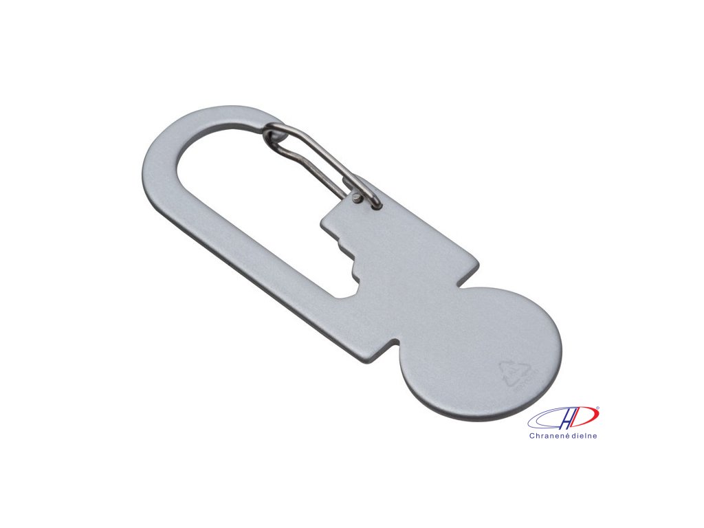 Hliníkový multinástroj obsahujúci žetón na nákupný vozík, tri imbusové kľúče rôznych veľkostí a karabínu.Dodatočné parametre