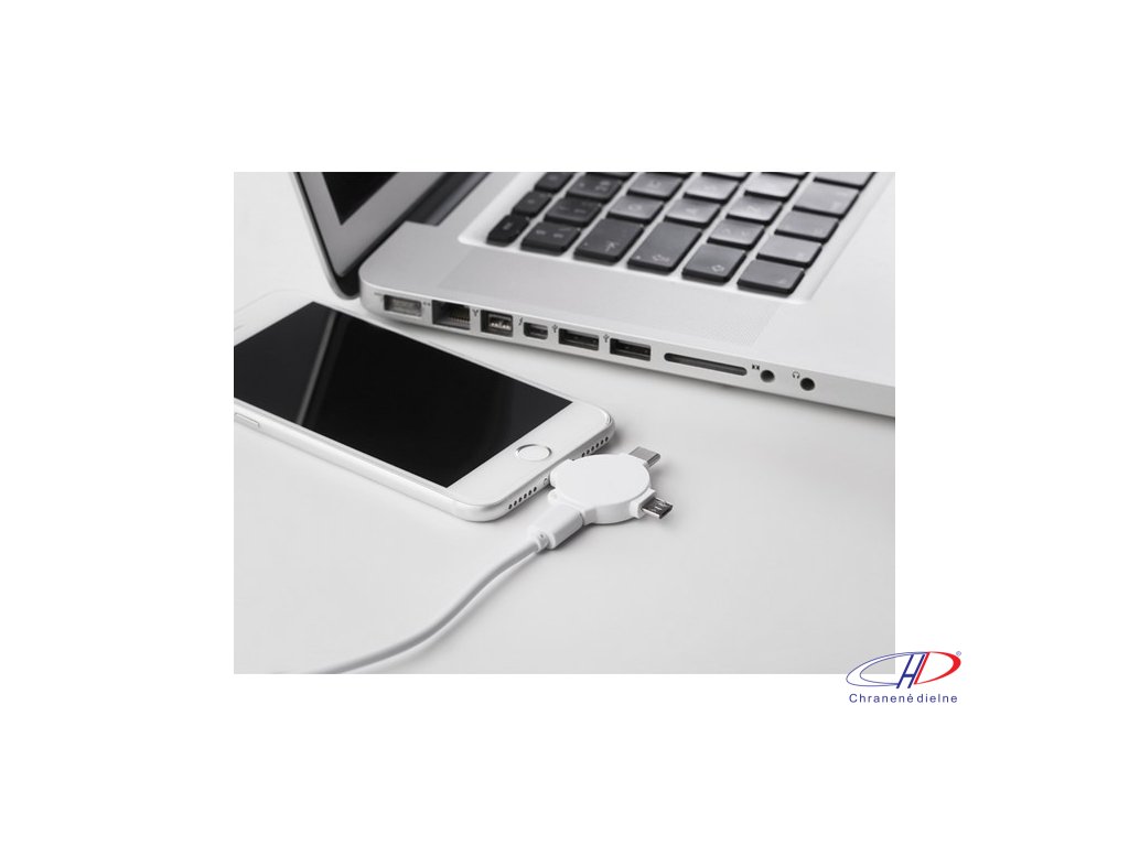 Nabíjací kábel s tromi konektormi. Micro-USB, type-c a konektorom pre zariadenia s iOS. Ideálne pre plnofarebnú personalizáciu.