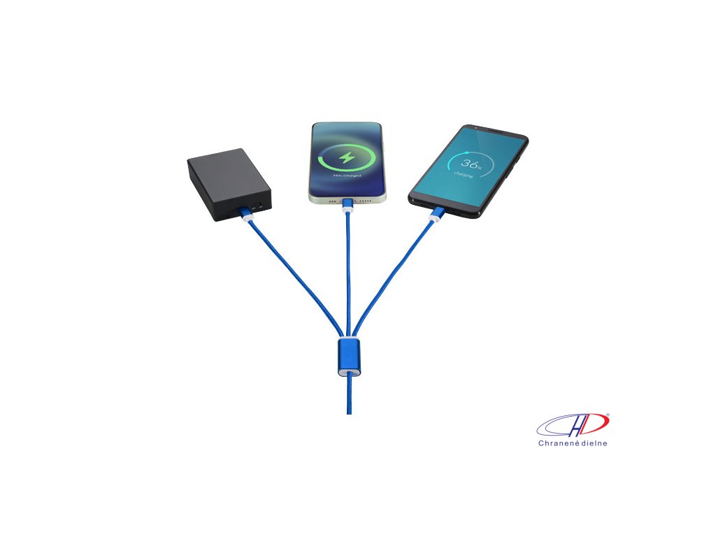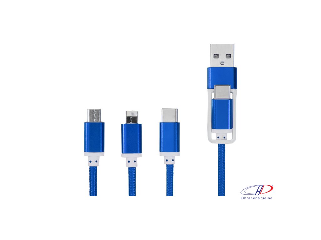 Nabíjací kábel 3v1 s dvojitým vstupom , Royal blue
