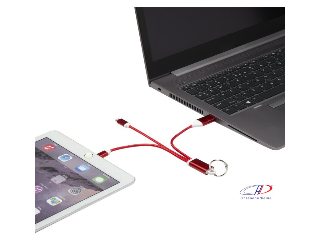 Nabíjací kábel 4v1 z recyklovaného hliníka/kľúčenka , Red