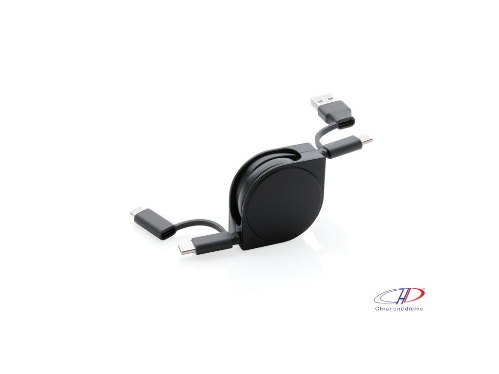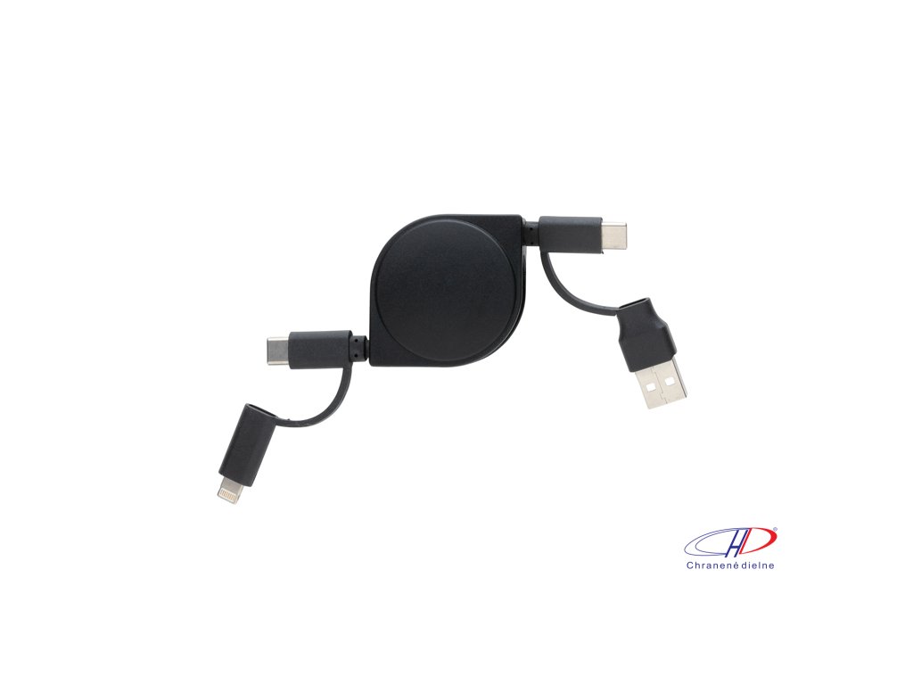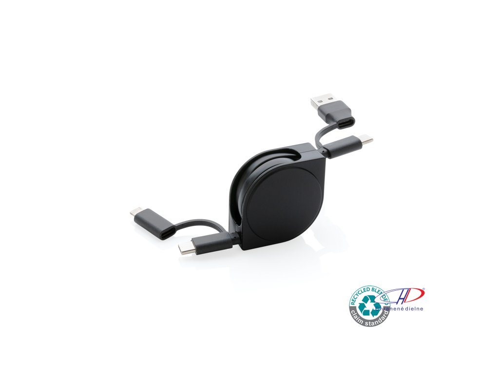 Nabíjací kábel 6 v 1 z RCS recyklovaného plastu a TPE , Black