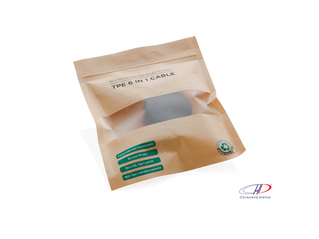 Zvinovací nabíjací kábel 6 v 1. Puzdro vyrobené z recyklovaného ABS plastu s RCS certifikáciou, kábel z recyklovaného TPE. RCS (Recycled Claim Standard) je globálny štandard, ktorý umožňuje overiť použitie recyklovaného materiálu v produktu naprieč celýmDodatočné parametre