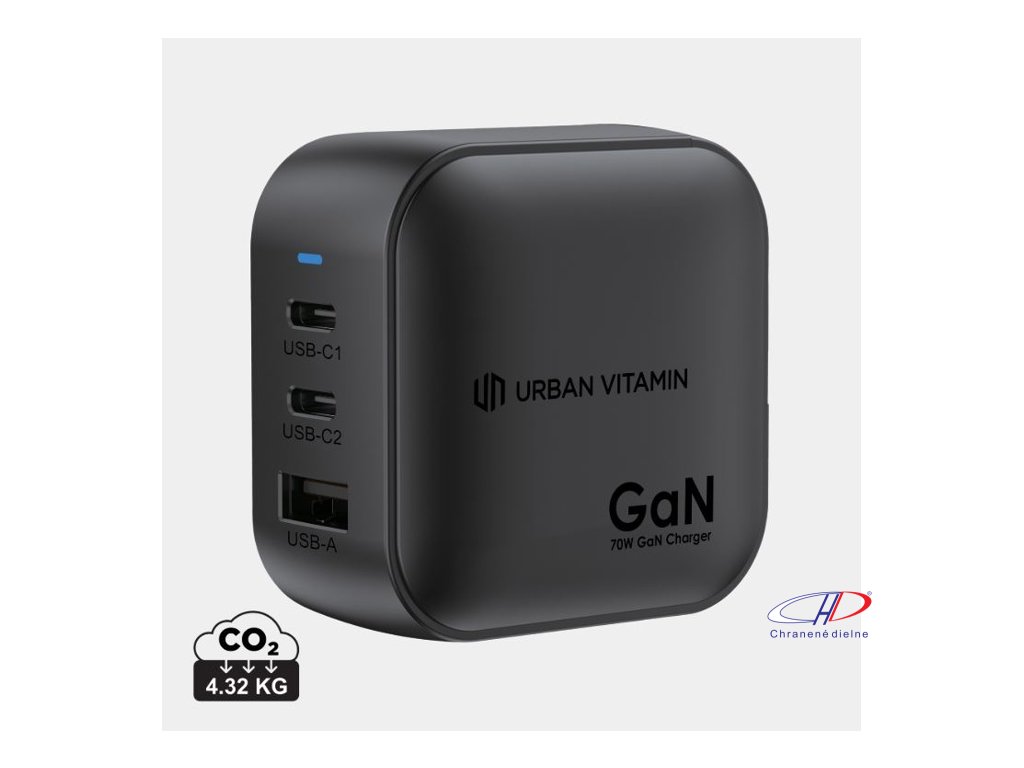 70W nabíjačka PD GAN s konektorom EU, USA, UK, vybavená superrýchlym portom typu C a ďalším portom USB A. GAN je nová bezpečnejšia technológia nabíjania. Vyrobené z recyklovaného ohňovzdorného PC RCS. Podiel recyklátu: 19 %. Bez PVCDodatočné parametre