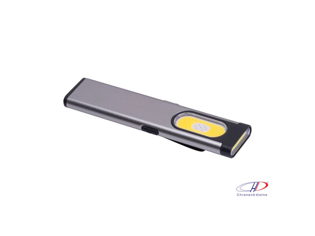 Dobíjateľná COB baterka (450 mAh) z recyklovaného hliníka s bočným svetlom (160 lumenov) a predným svetlom (80 lumenov), klipom a magnetickým koncom. Obsahuje nabíjací kábel.Dodatočné parametre