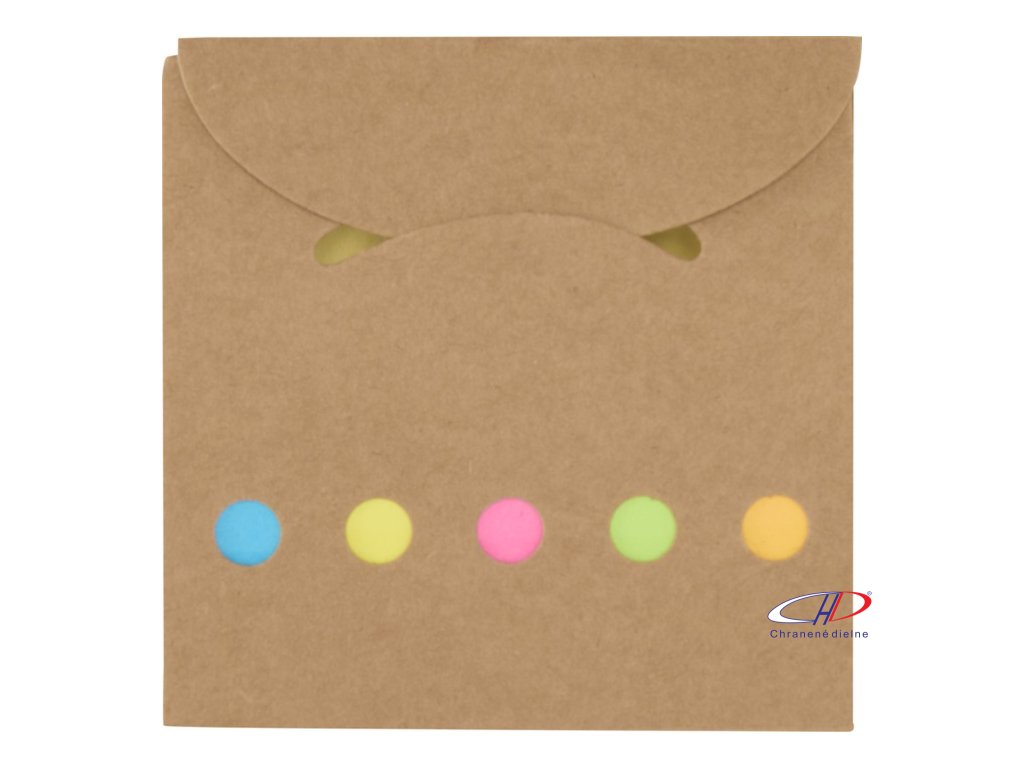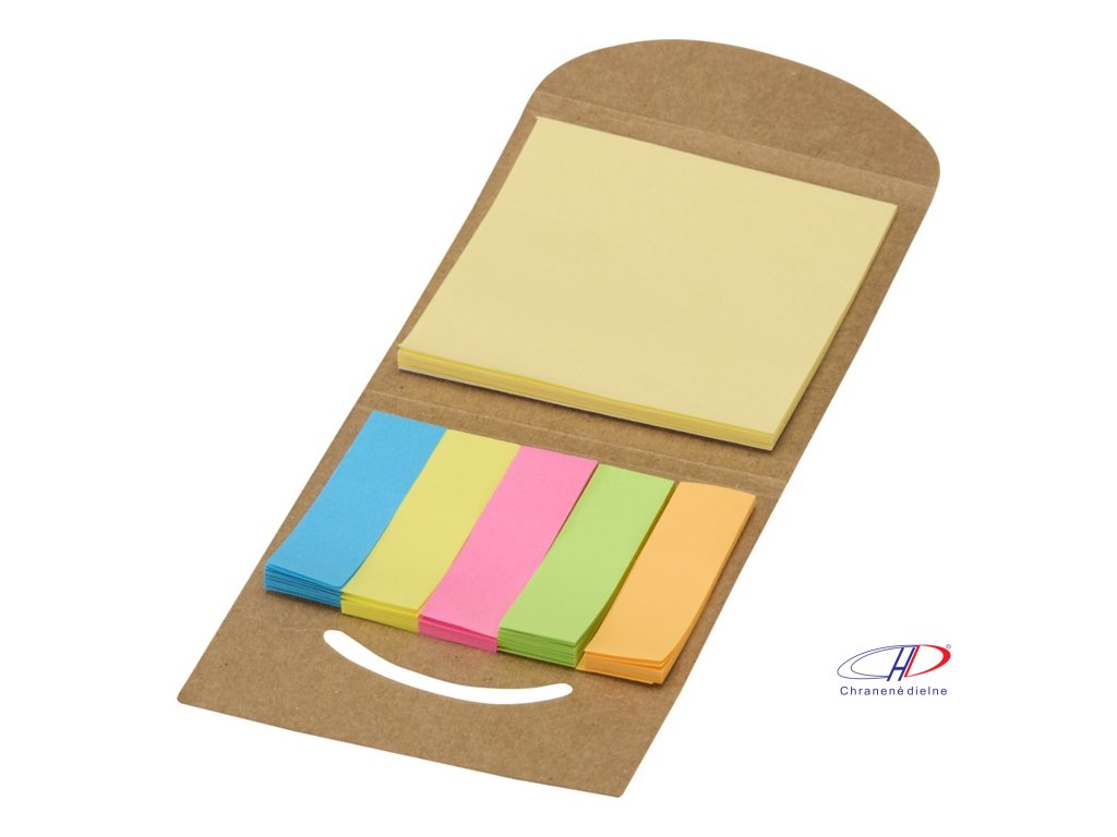 125 malých (5 × 1,5 cm) samolepiacich papierikov v 5 rôznych farbách a 25 veľkých (7,5 × 7,5 cm) žltých samolepiacich papierikov.Dodatočné parametre