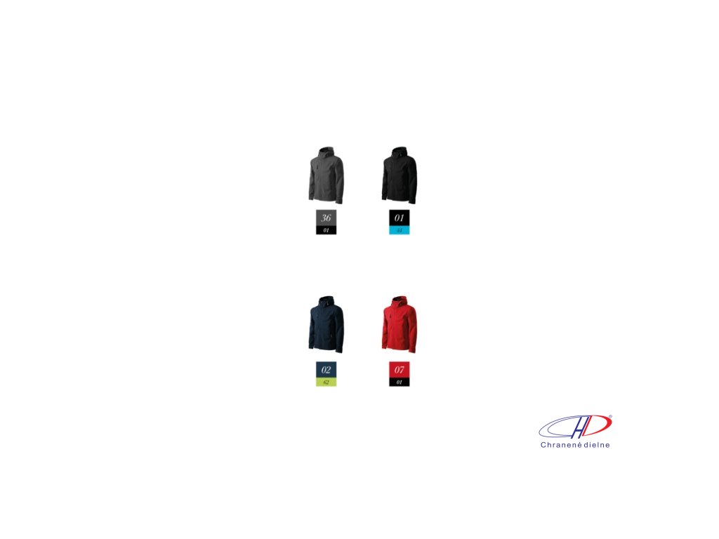3vrstvový softshell s membránou, efektná textúra softshellu, úprava Nanotex® zabraňujúca prieniku vody, celozapínací špirálový zips s chlopňou, kapucňa na stiahnutie šnúrkou, kapucňa a lemy rukávov nastaviteľné suchým zipsom, vrecká s reverzným špirálovým zipsom, náprsné vrecko, tvarovaný a mierne predĺžený zadný diel, kontrastné prvky, Údržbové informácie pre softshellový materiál