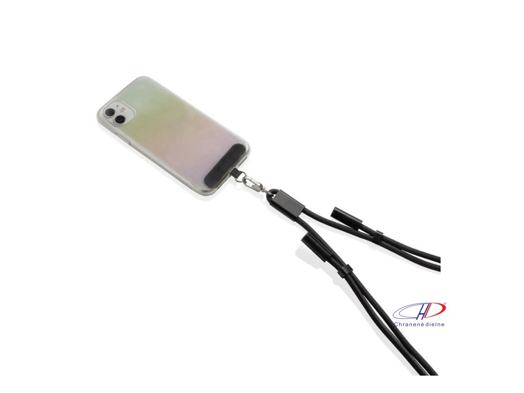 Telefónny popruh 160 cm s pevnou šnúrkou, krúžkom a háčikom chráni telefón pred pádom. Slúži aj ako USB-C nabíjací kábel s výkonom až 60?W. Zosilnené konektory a odolné materiály. Podporuje prenos dát. Bez PVC, balené v FSC® certifikovanom obale.Dodatočné parametre