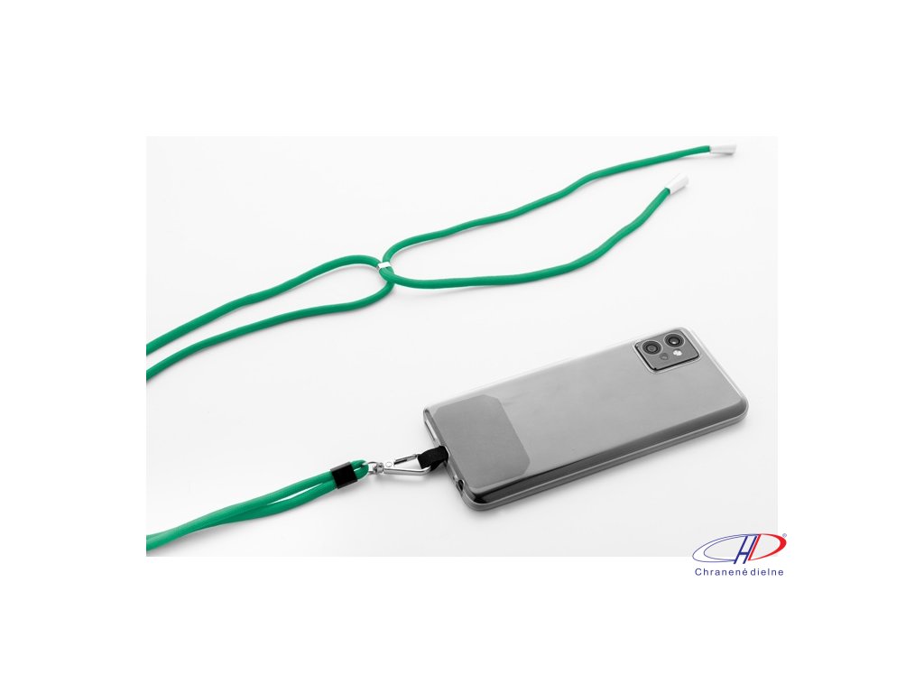 RPET lanyard s nastaviteľnou dĺžkou pre držiak na mobil s kovovou karabínou a vložkou na telefón.Dodatočné parametre