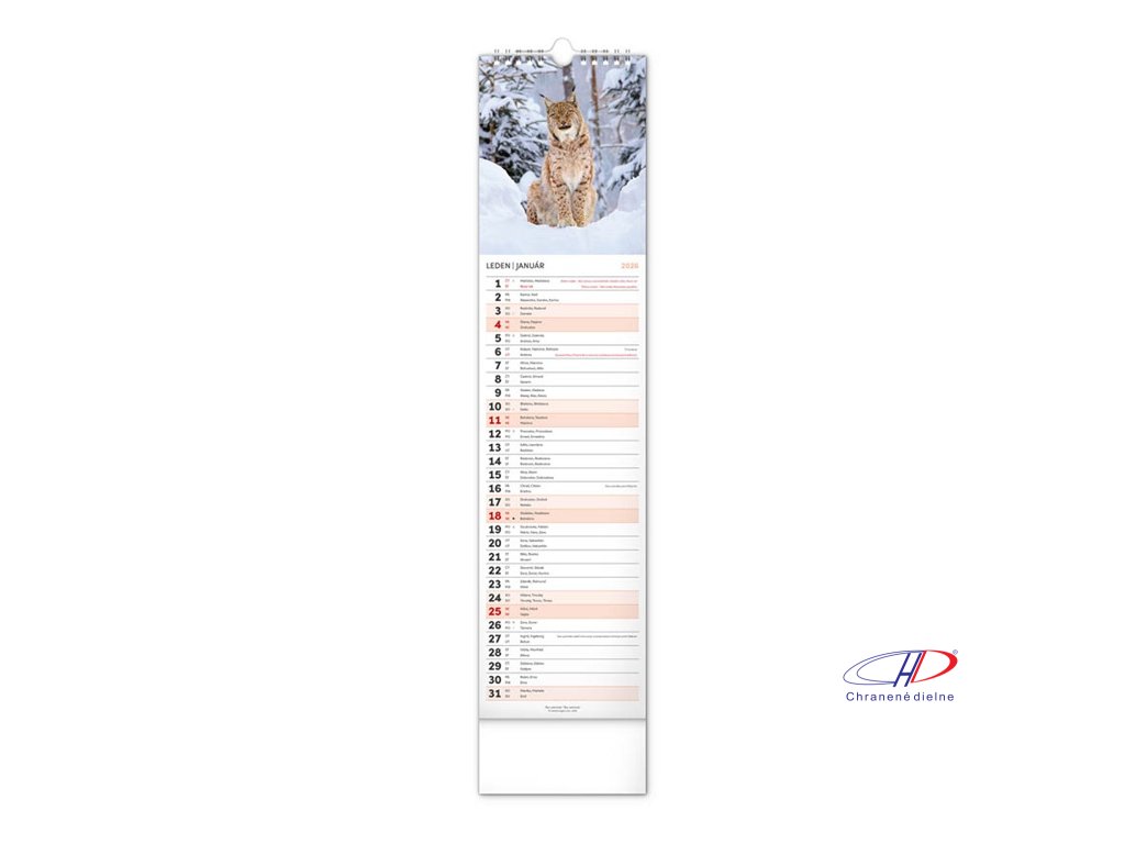 MINIMÁLNY ODBER 3 kusy. Väzba: dvojitá špirála. Kalendárium: CZ/SK. 14 listov. Je dvojjazyčný a nájdete v ňom ako české, tak slovenské mená, sviatky, pamätné dni aj mesačné fázy. V každom jednotlivom dni je priestor pre poznámkyDodatočné parametre