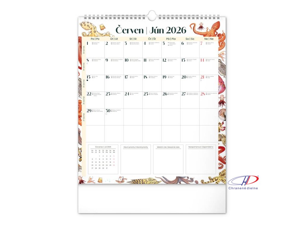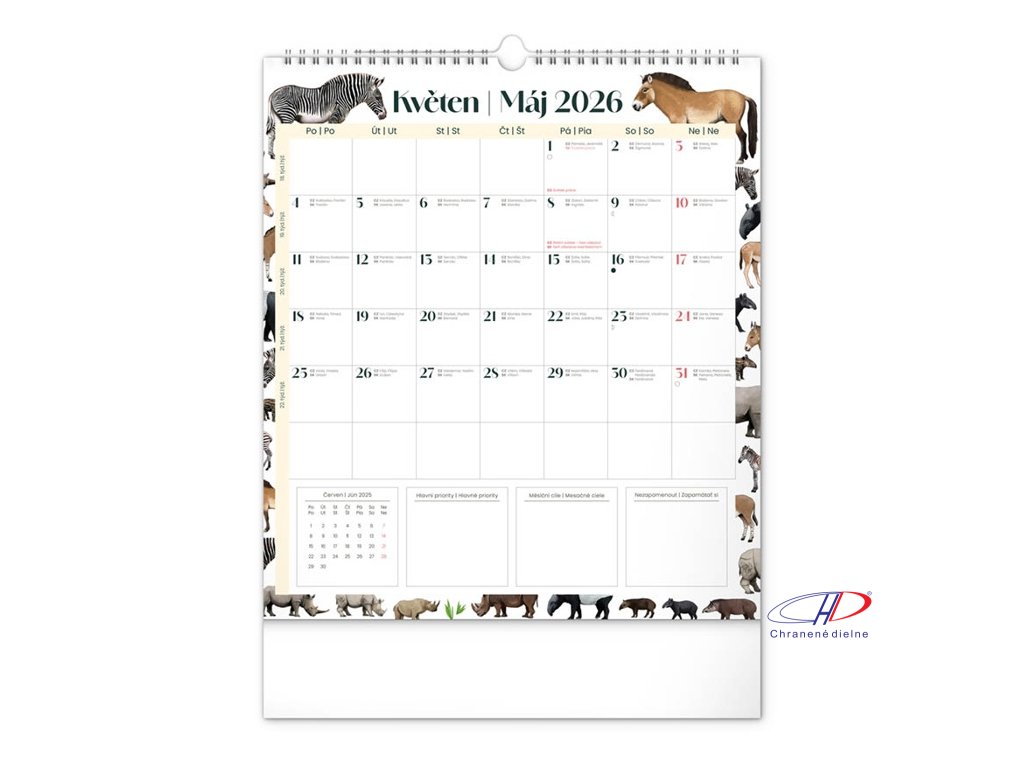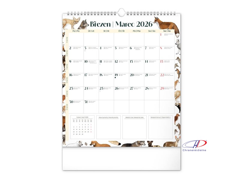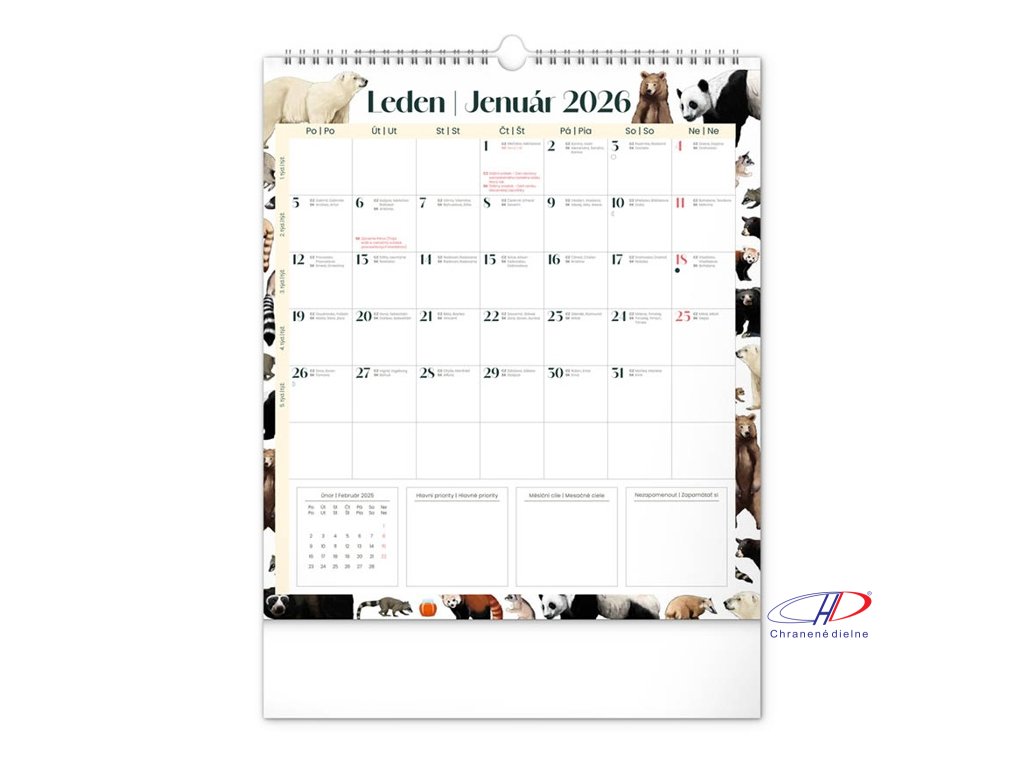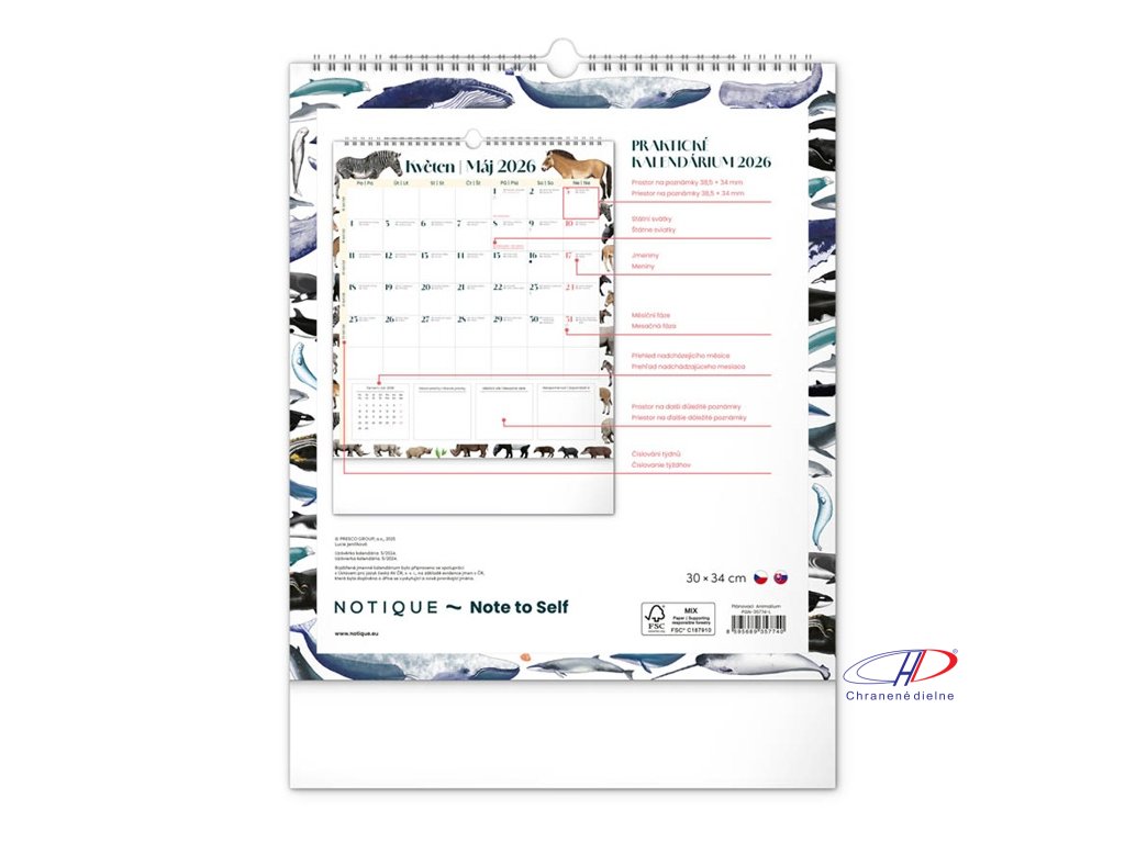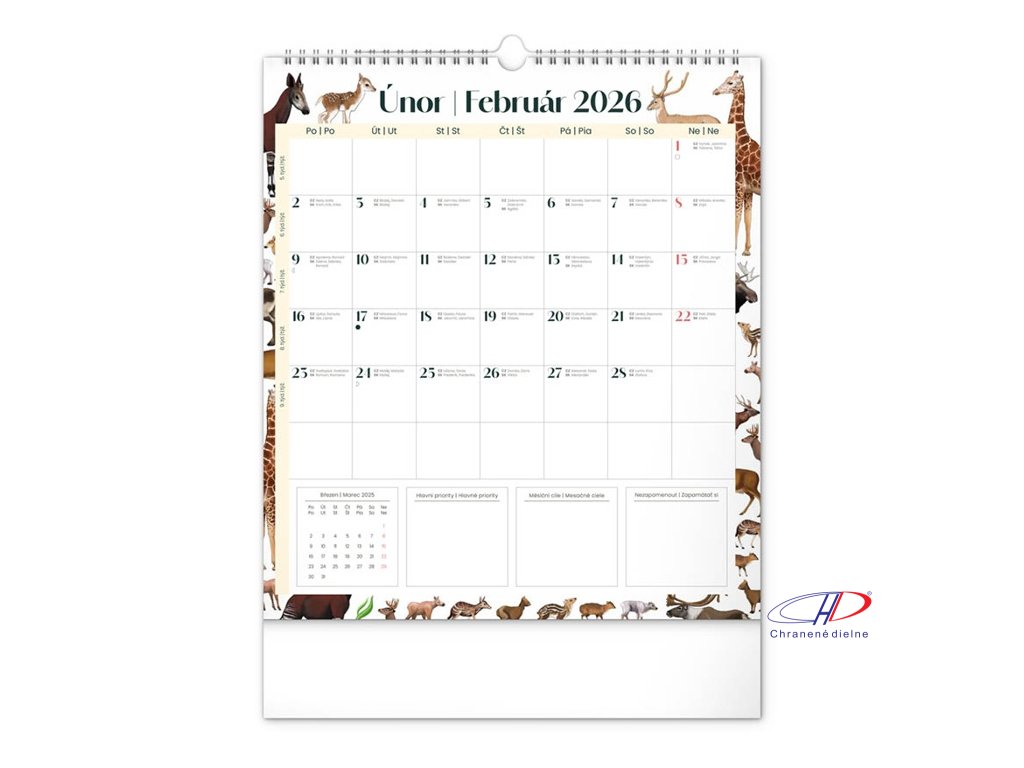 MINIMÁLNY ODBER 3 kusy. Väzba: dvojitá špirála. Kalendárium: CZ/SK. 14 listov. Kalendár obsahuje české a slovenské kalendárium a krásne ilustrácie zvierat. Nechýbajú ani štátne sviatky a mesačné fázyDodatočné parametre