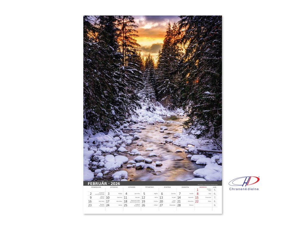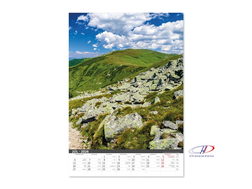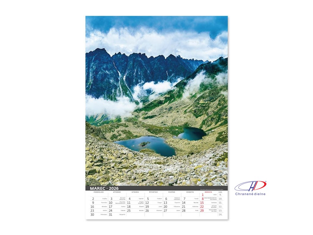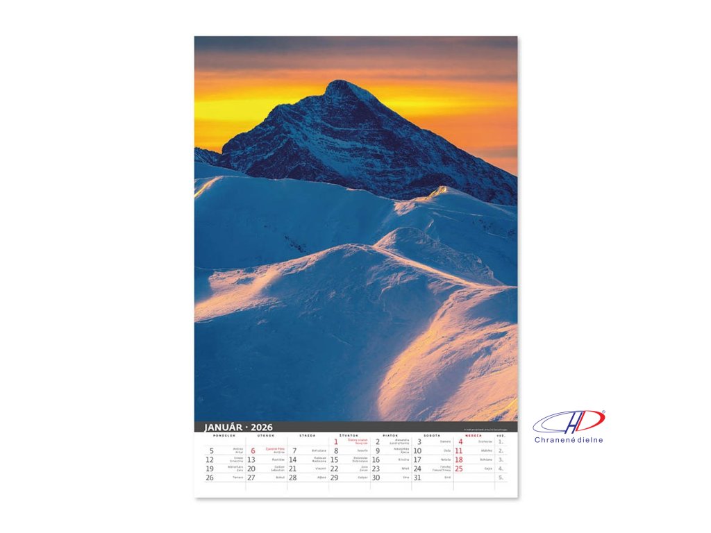 POVINNÉ BALENIE 5 kusov. Kalendár Tatry 2026. Formát: 31,5 x 45 cm. Kalendárium: slovenské mesačné menné . Rozsah kalendára: 14 listov. Twinová väzba. Plocha pre potlač: 31,5 x 7 cm. Autor: Boris MichaličekDodatočné parametre