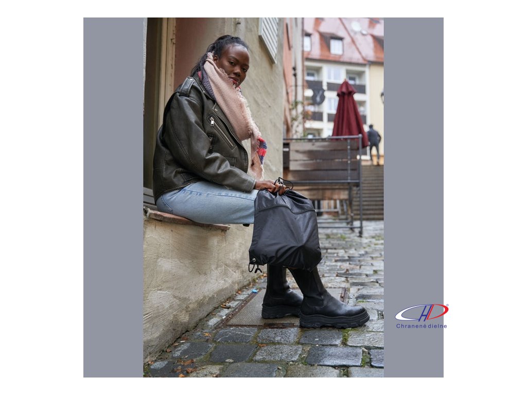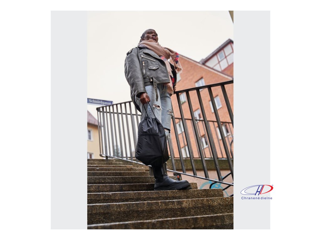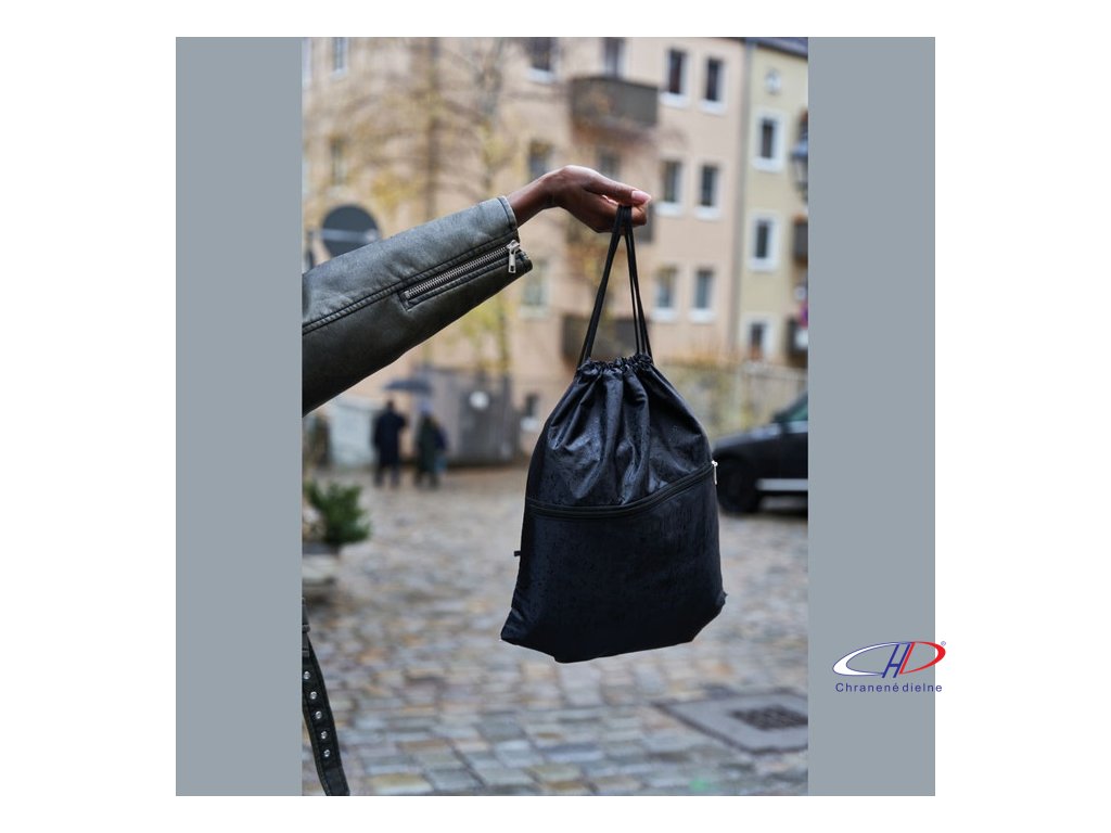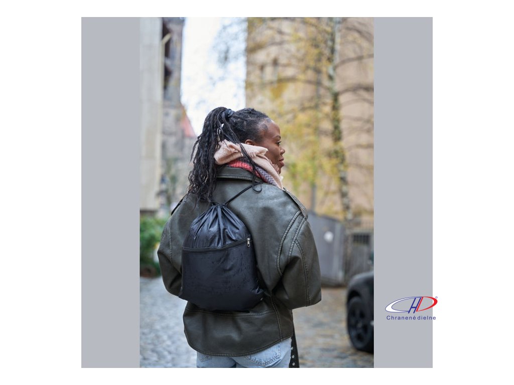 Nepremokavé vrecúško z recyklovateľných plastov RPET s uzatvárateľnou prednou priehradkou, popruhmi a sťahovacou šnúrkou.Dodatočné parametre