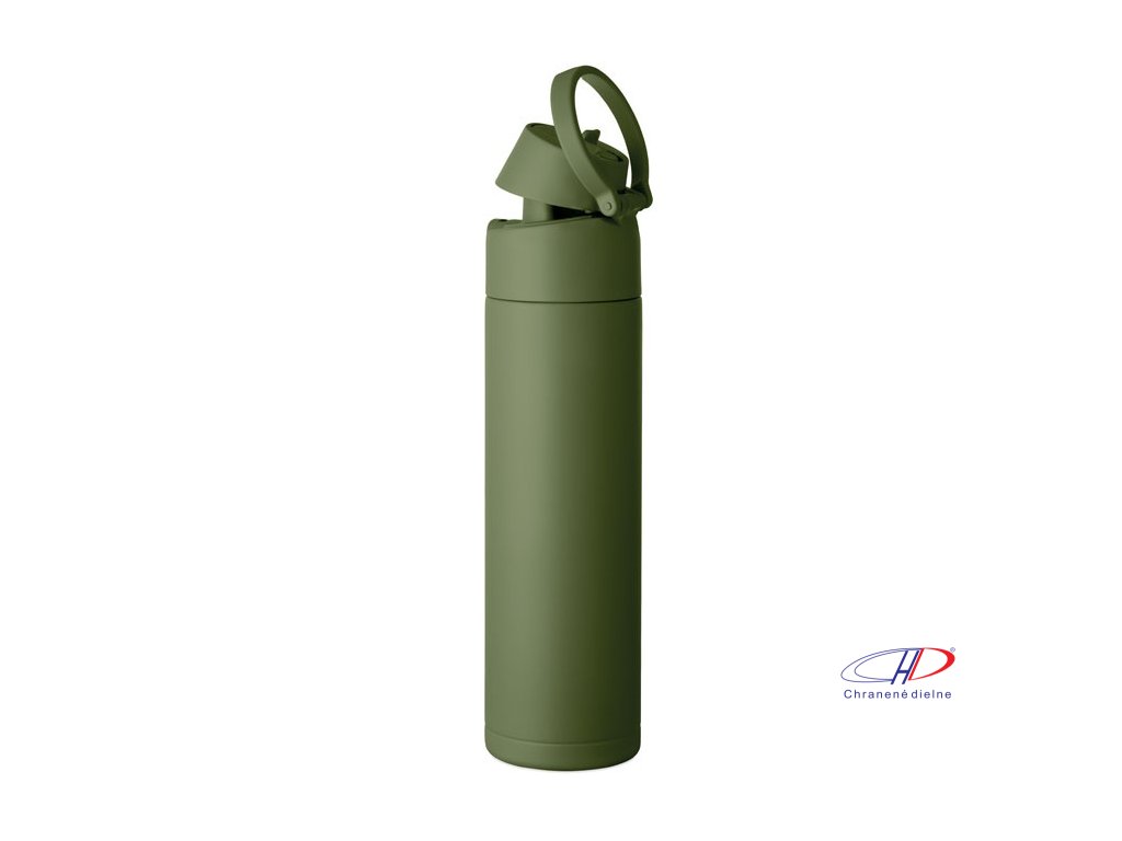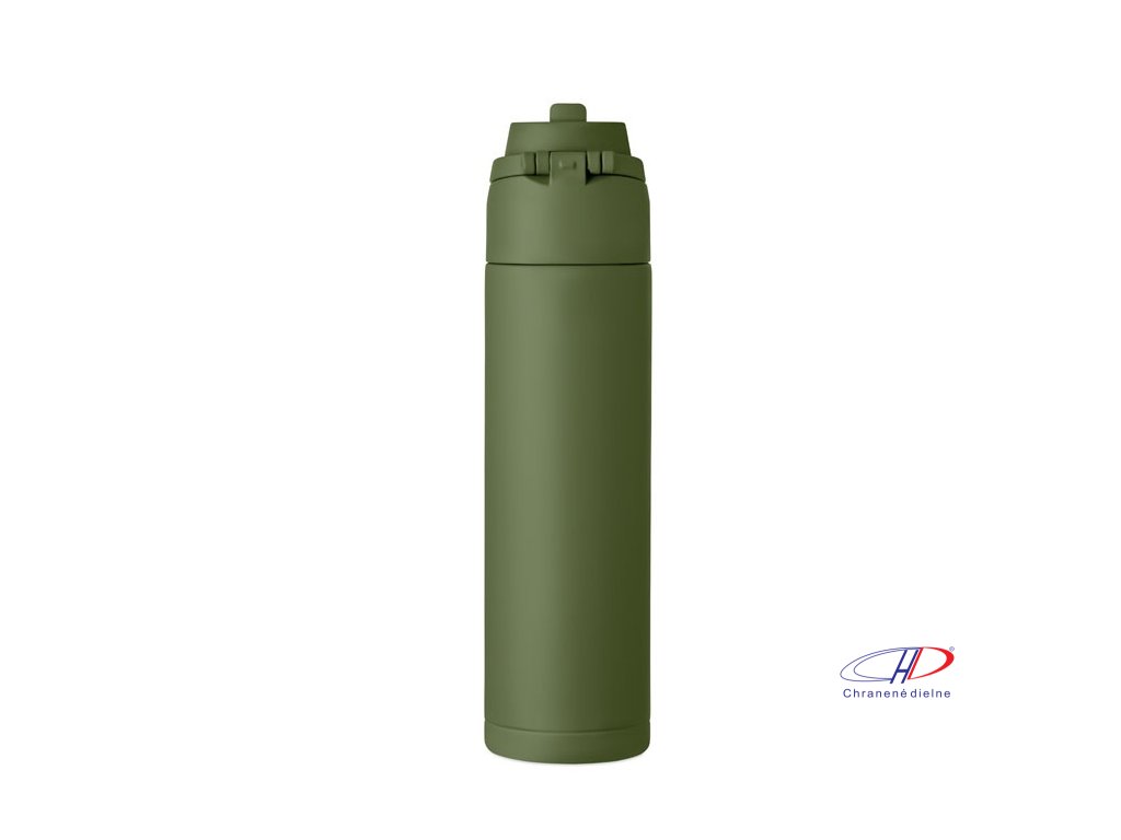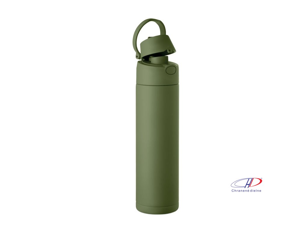 Jednostenná fľaša z recyklovanej nehrdzavejúcej ocele (90 % recyklovanej nehrdzavejúcej ocele a 10 % nehrdzavejúcej ocele). Má slamku 2 v 1 a viečko z polypropylénu s rukoväťou. Nepriepustná. Objem: 650 ml.Dodatočné parametre