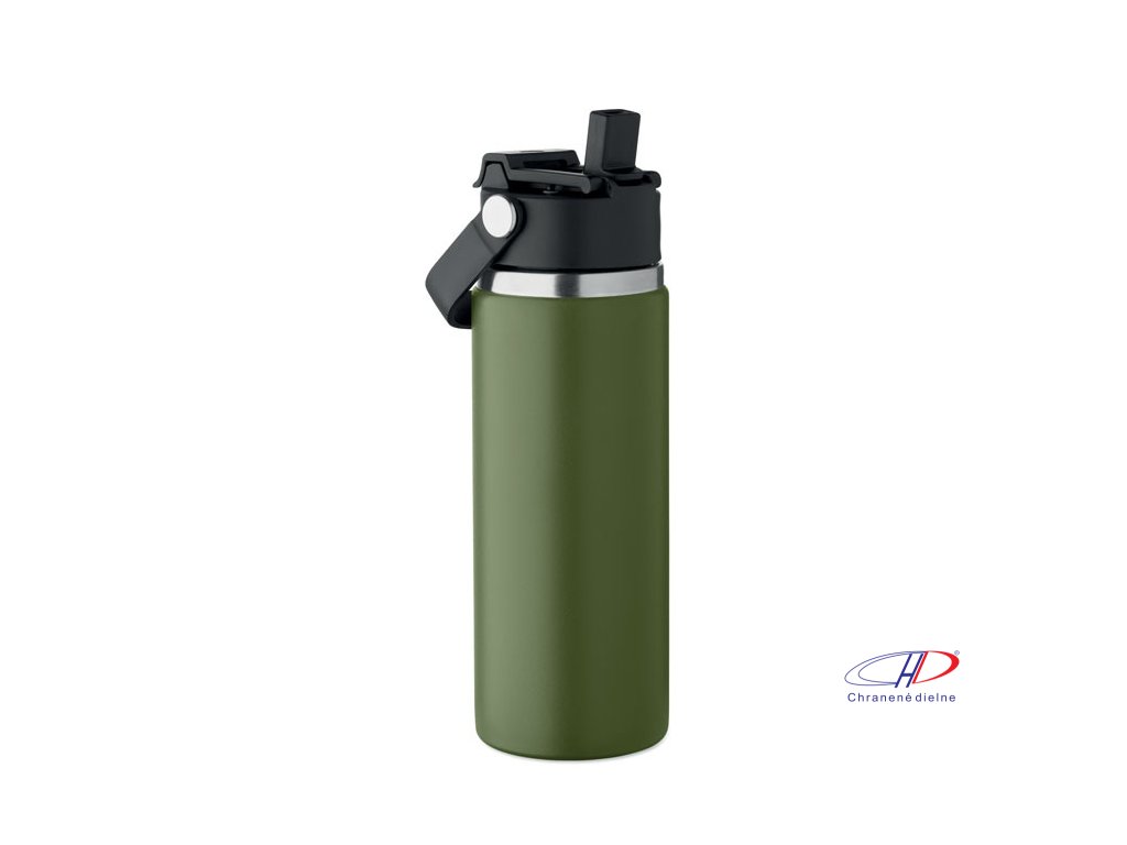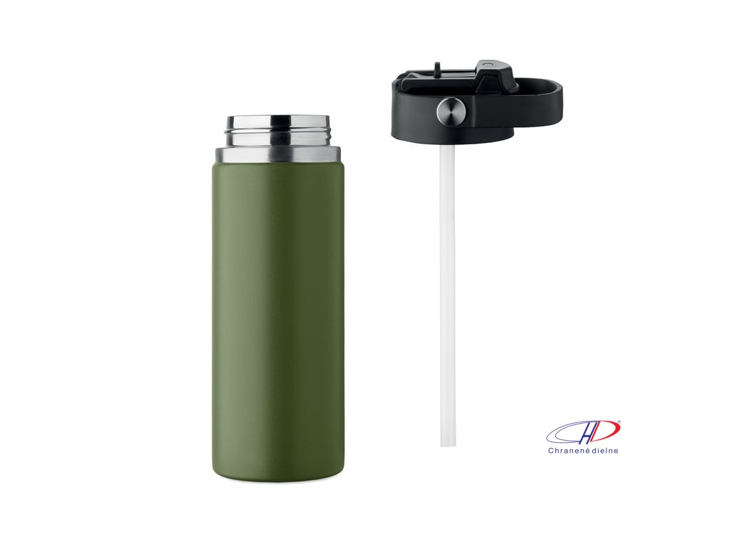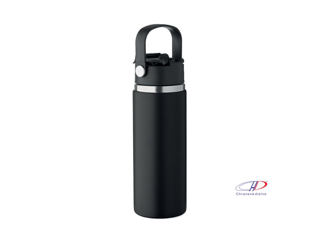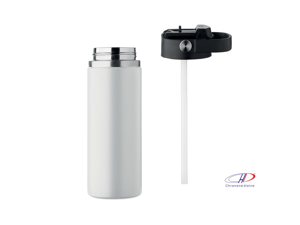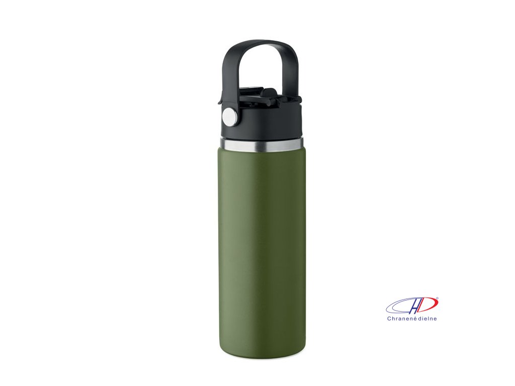 Dvojstenná izolovaná fľaša z recyklovanej nehrdzavejúcej ocele (90 % recyklovanej nehrdzavejúcej ocele a 10 % nehrdzavejúcej ocele) s kombinovanou slamkou a viečkom na popíjanie s rúčkou. Nepriepustná. Objem: 500 ml.Dodatočné parametre
