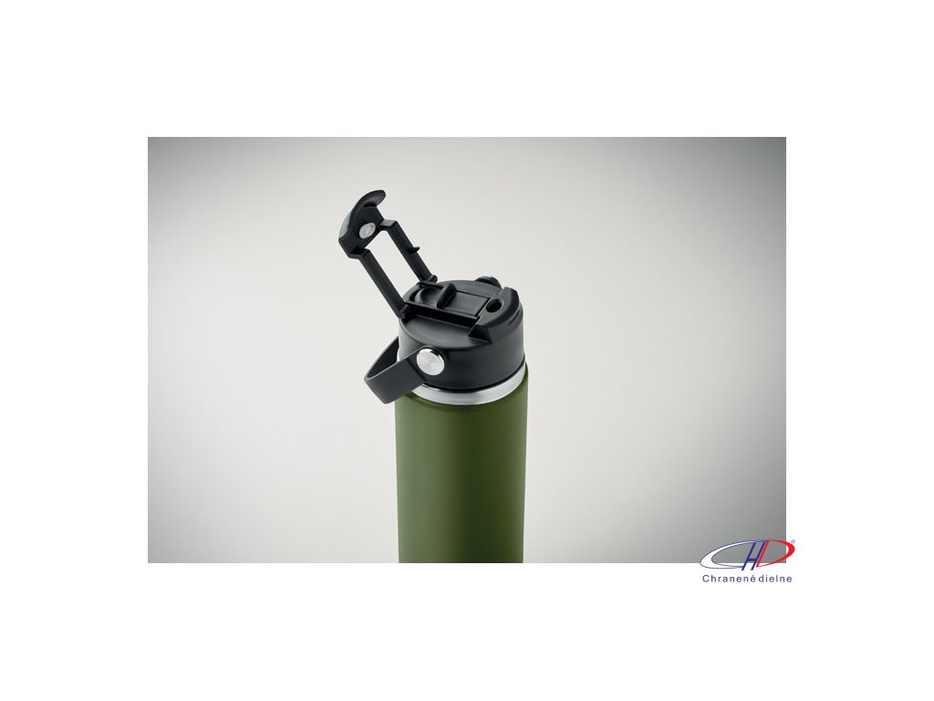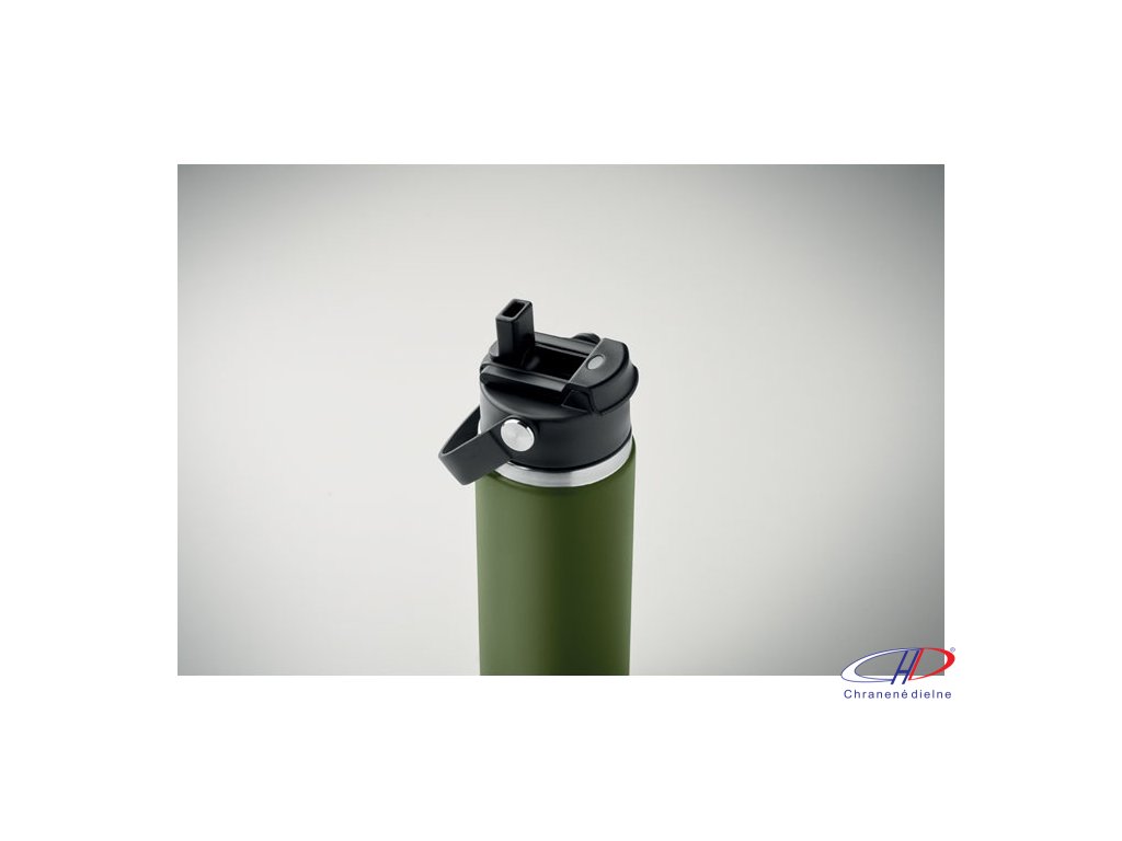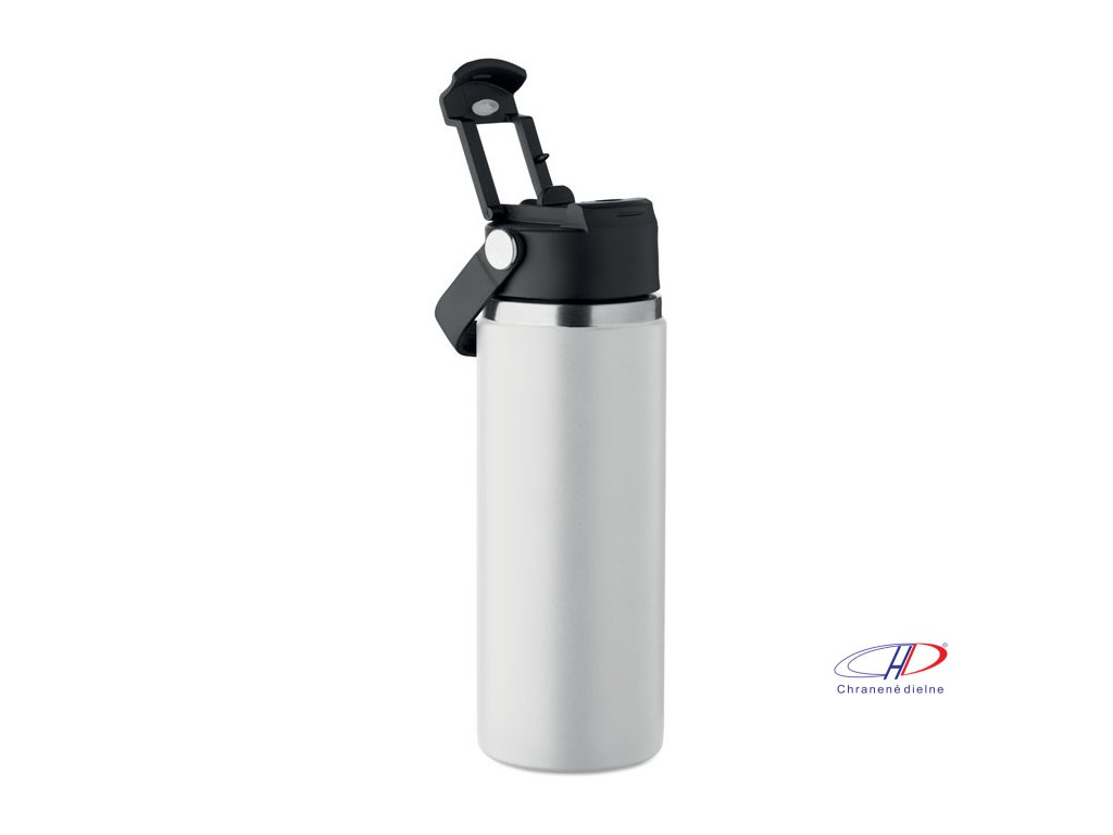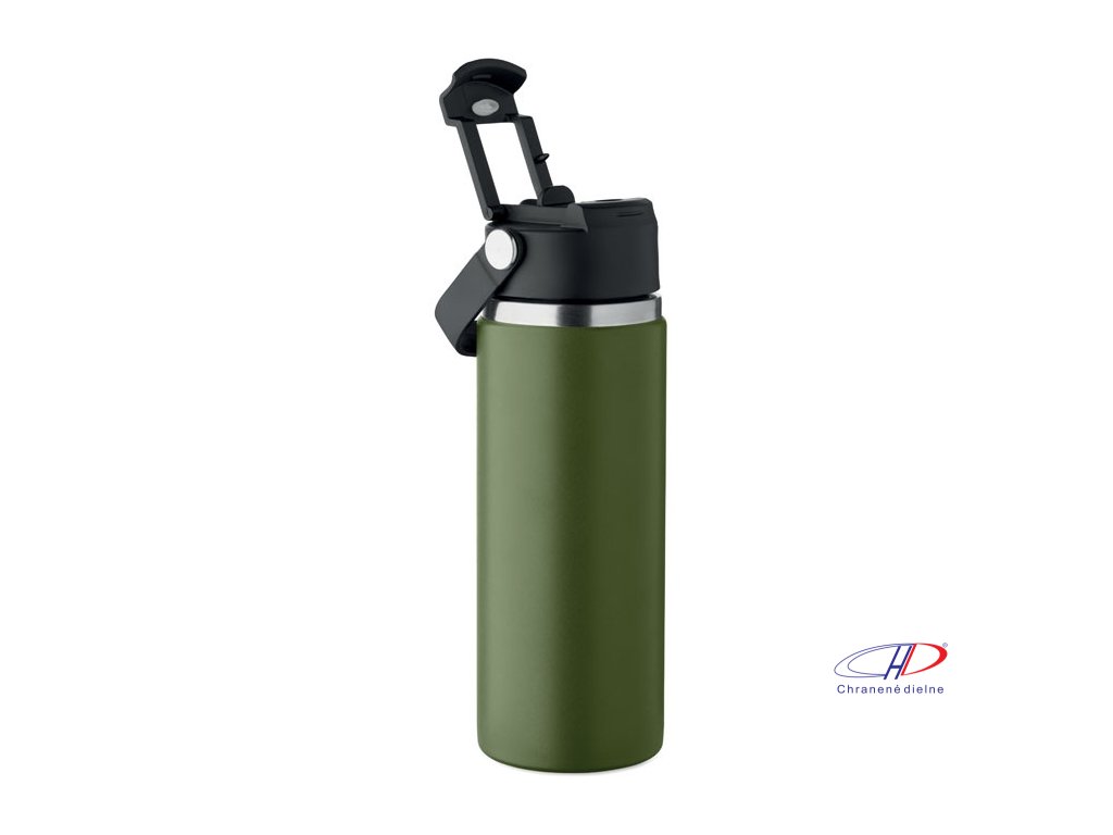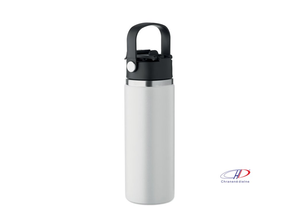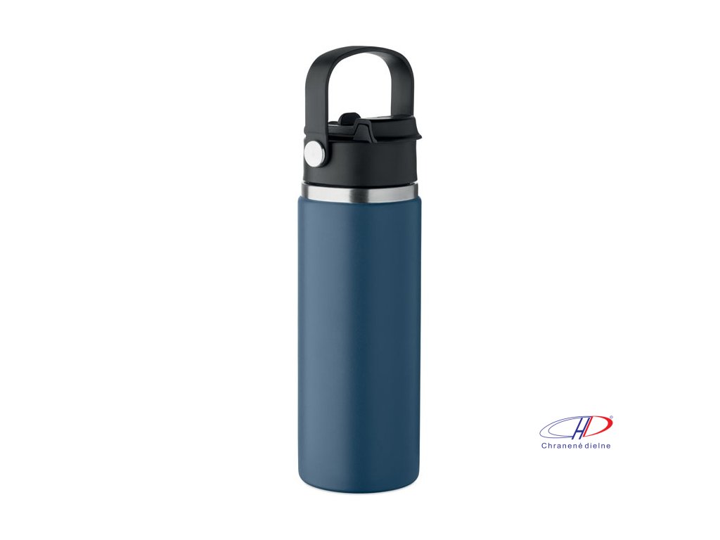 Dvojstenná izolovaná fľaša z recyklovanej nehrdzavejúcej ocele (90 % recyklovanej nehrdzavejúcej ocele a 10 % nehrdzavejúcej ocele) s kombinovanou slamkou a viečkom na popíjanie s rúčkou. Nepriepustná. Objem: 500 ml.Dodatočné parametre