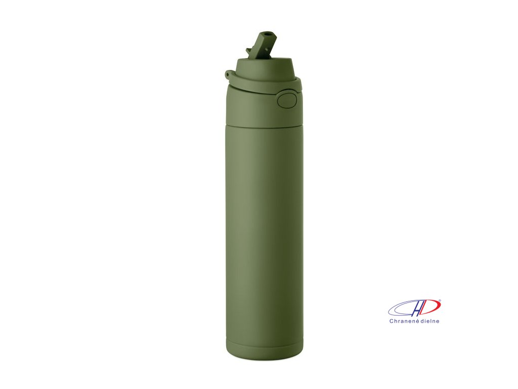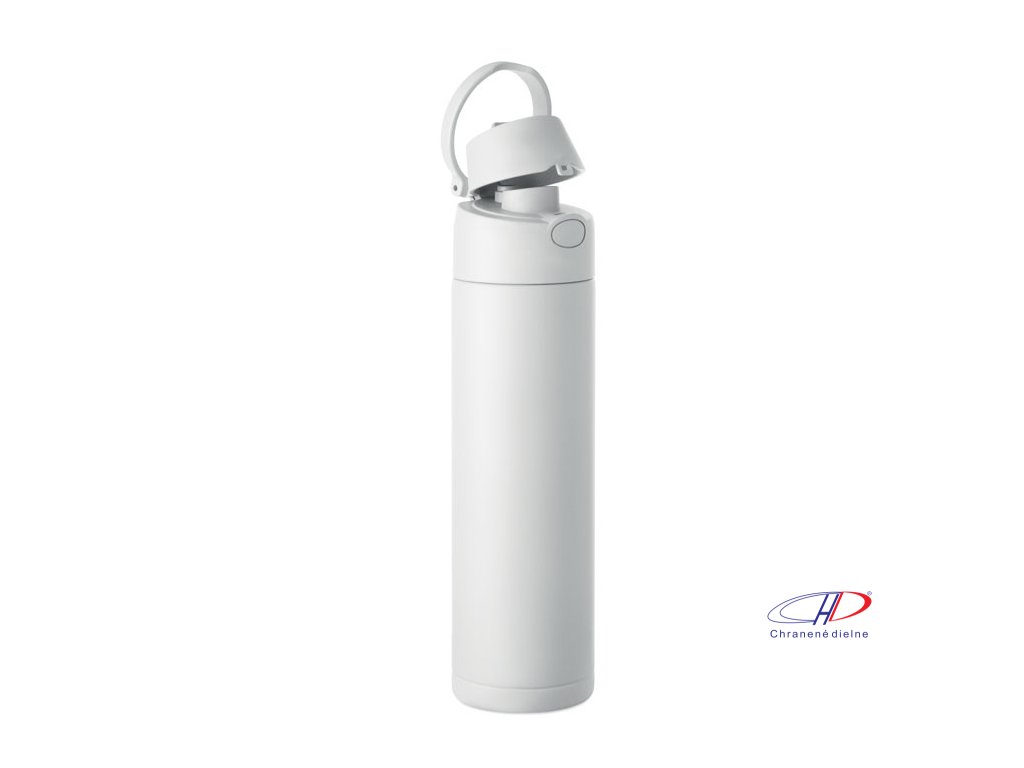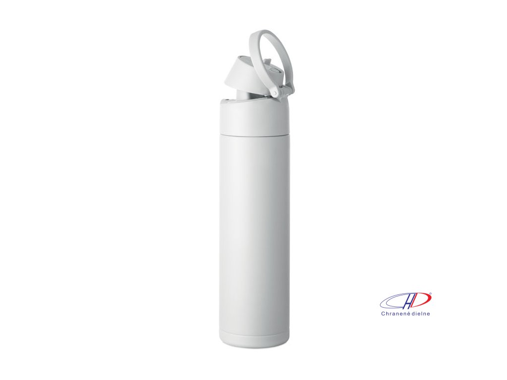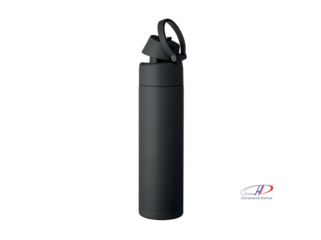 Dvojstenná izolovaná fľaša z recyklovanej nehrdzavejúcej ocele (90 % recyklovanej nehrdzavejúcej ocele a 10 % nehrdzavejúcej ocele). Má slamku 2 v 1 a viečko z polypropylénu s rukoväťou. Nepriepustná. Objem: 500 ml.Dodatočné parametre