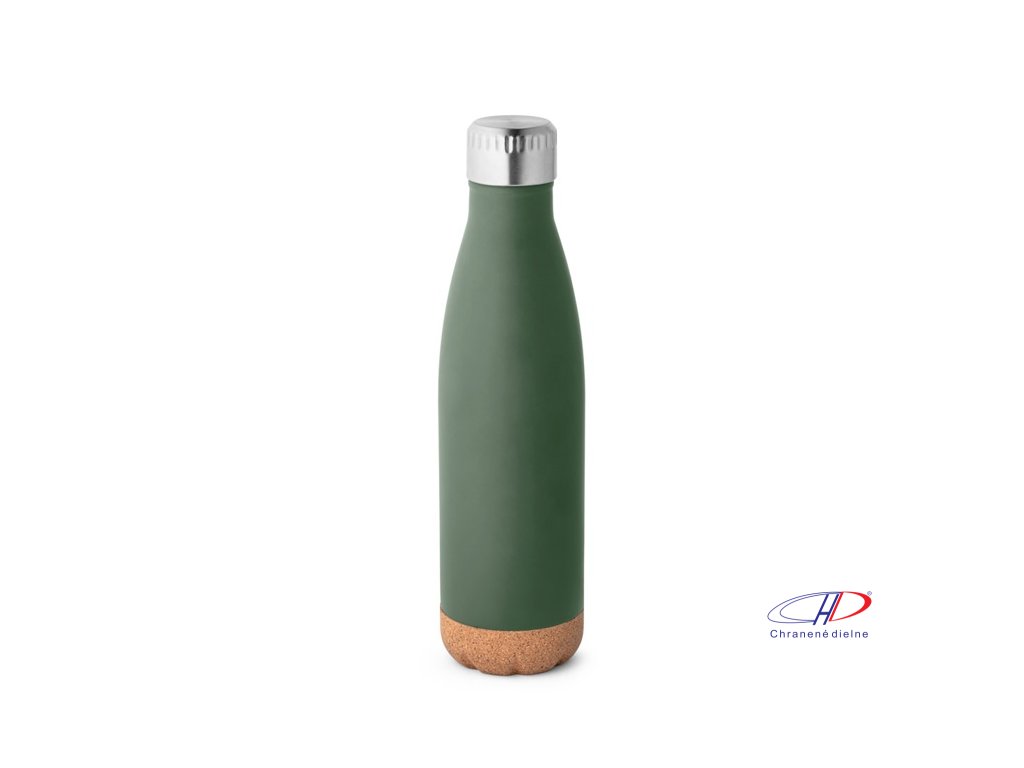 Dvojstenná vákuovo izolovaná fľaša z nehrdzavejúcej ocele s korkovým dnom. Udrží nápoje teplé 8 hodín a studené 24 hodín. Kapacita až 560 ml. Dodávané v darčekovej krabičke z kraftového papieraDodatočné parametre