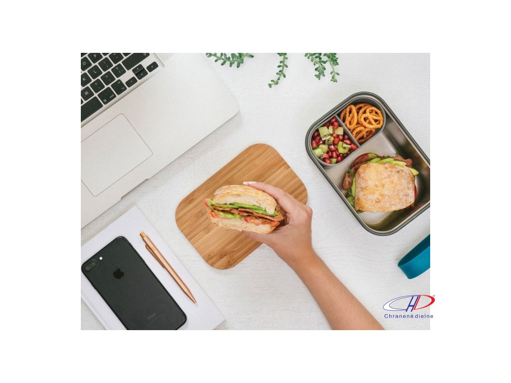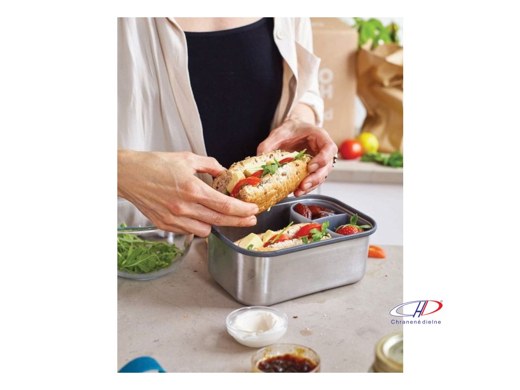Antibakteriálne bambusové veko je možné využiť ako dosku na krájanie. Krabička z nerezovej ocele chráni obsah a silikónový pásik poskytuje väčšiu bezpečnosť. Vnútorná priehradka na oddelenie potravín. Vhodná do mikrovlnnej rúry. Iba ručné umývanie.Dodatočné parametre