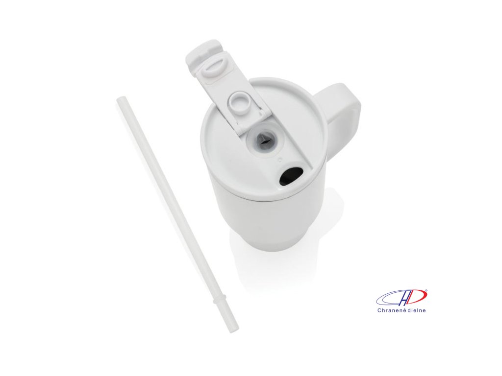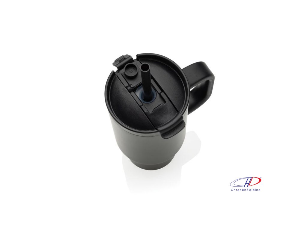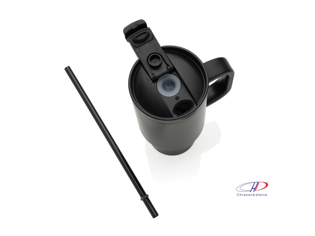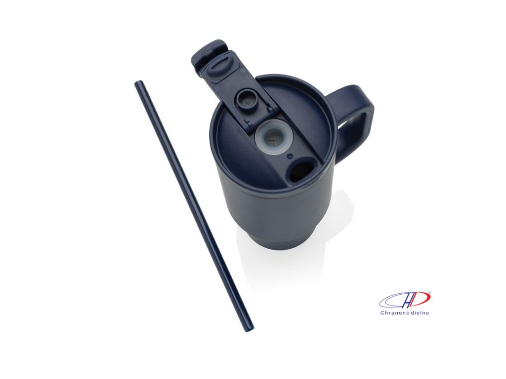 Hodí sa pre väčšinu držiakov na poháre. Udrží nápoje teplé 5 hodín a studené 15 hodín. Skrutkovacie viečko proti rozliatiu, plastová slamka so silikónovou špičkou. Pre zachovanie kvality sa odporúča ručné umývanie. Podiel recyklátu: 73 %. BPA free.Dodatočné parametre