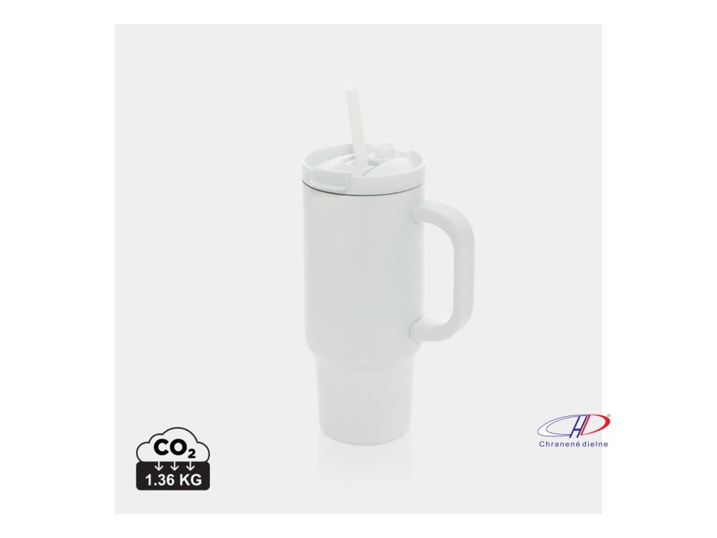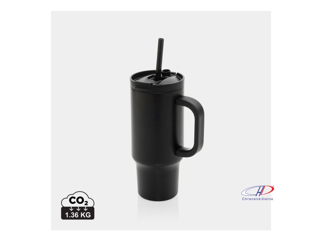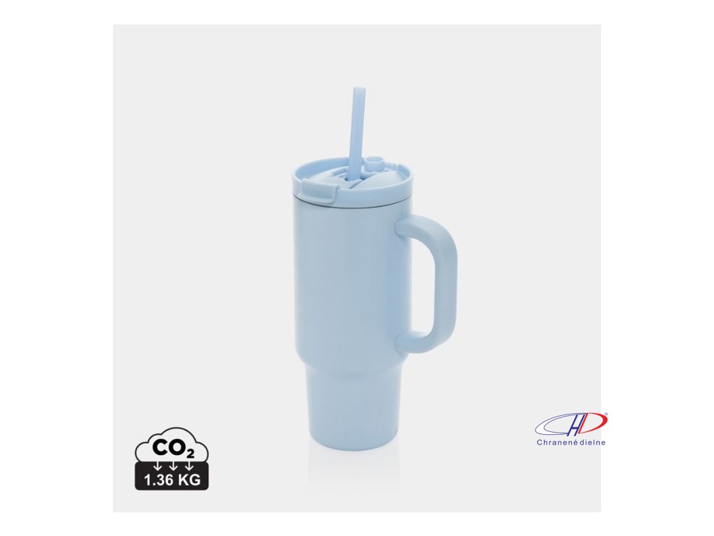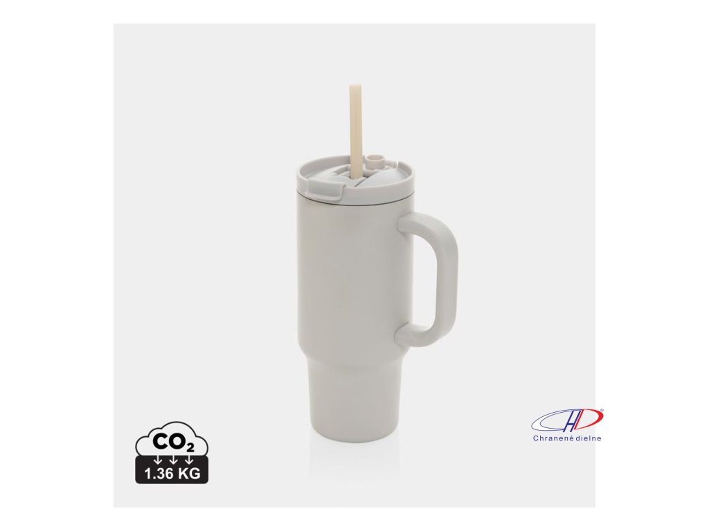 Hodí sa pre väčšinu držiakov na poháre. Udrží nápoje teplé 5 hodín a studené 15 hodín. Skrutkovacie viečko proti rozliatiu, plastová slamka so silikónovou špičkou. Pre zachovanie kvality sa odporúča ručné umývanie. Podiel recyklátu: 73 %. BPA free.Dodatočné parametre