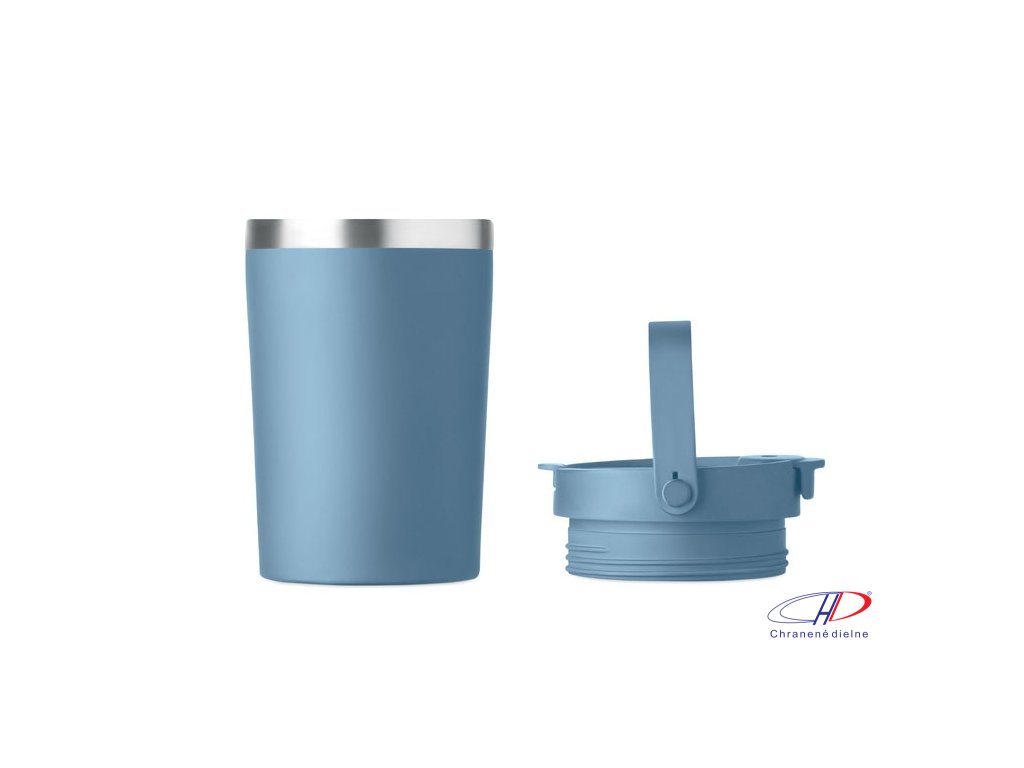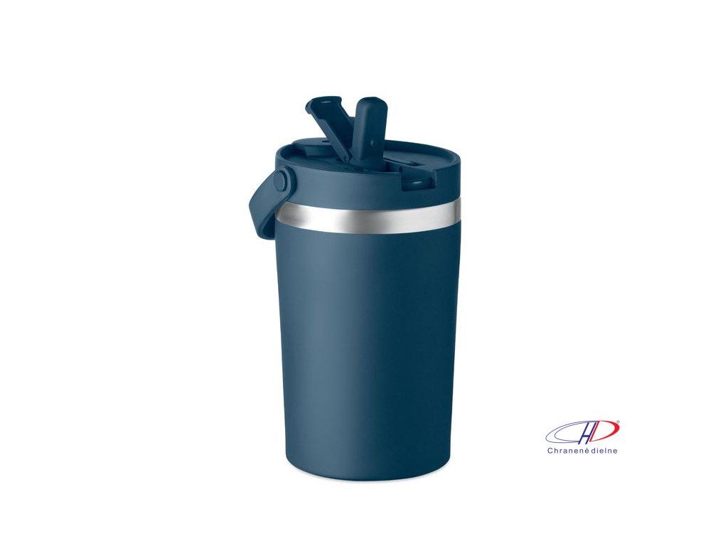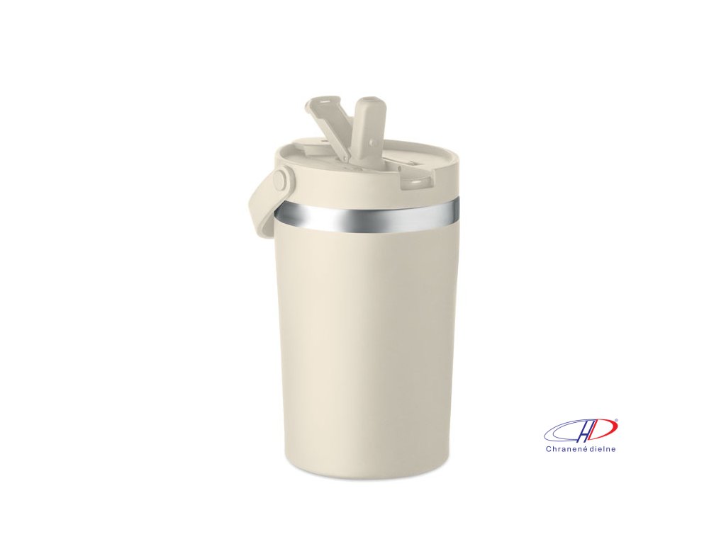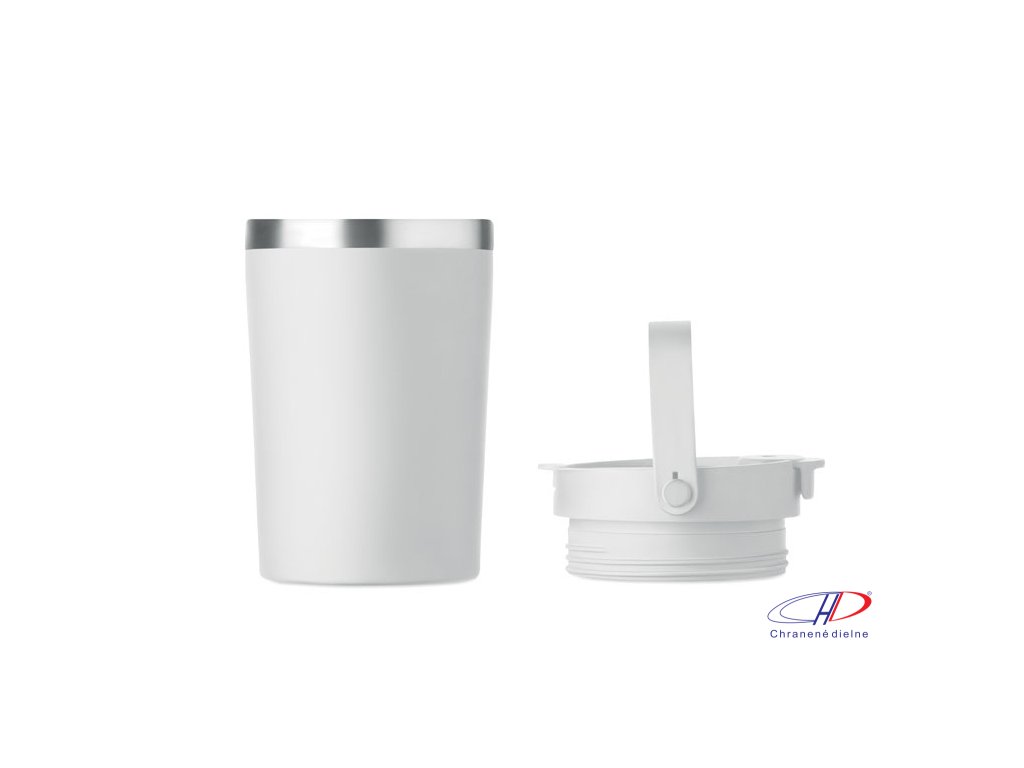 Pohár s dvojitou stenou z recyklovanej nehrdzavejúcej ocele (90 % recyklovanej nehrdzavejúcej ocele a 10 % nehrdzavejúcej ocele) s PP 2-v-1 uzáverom s slamkou. Nepriepustný a odolný. Objem: 350 ml.Dodatočné parametre