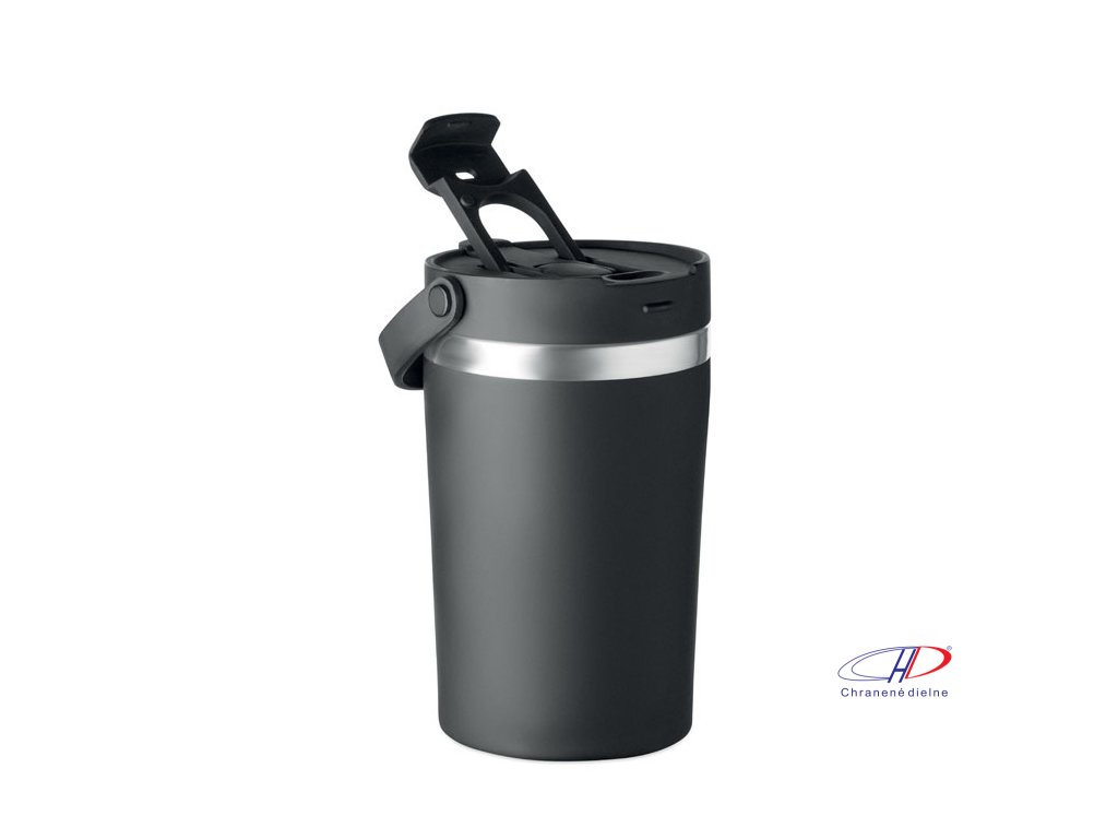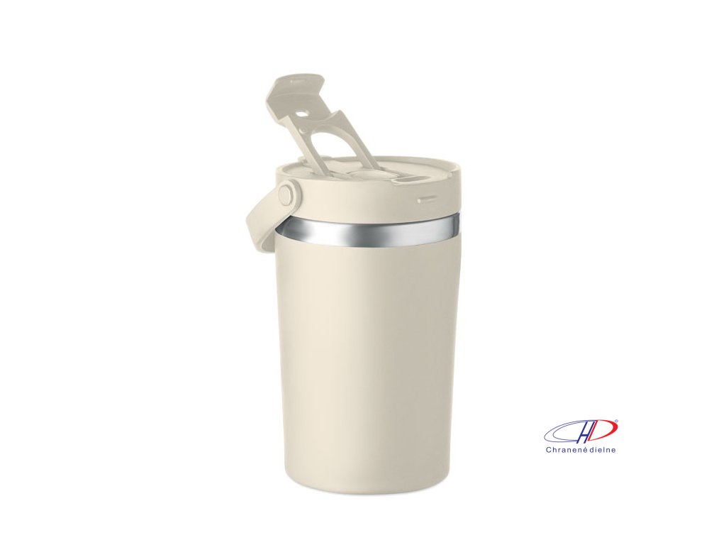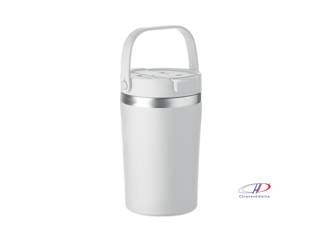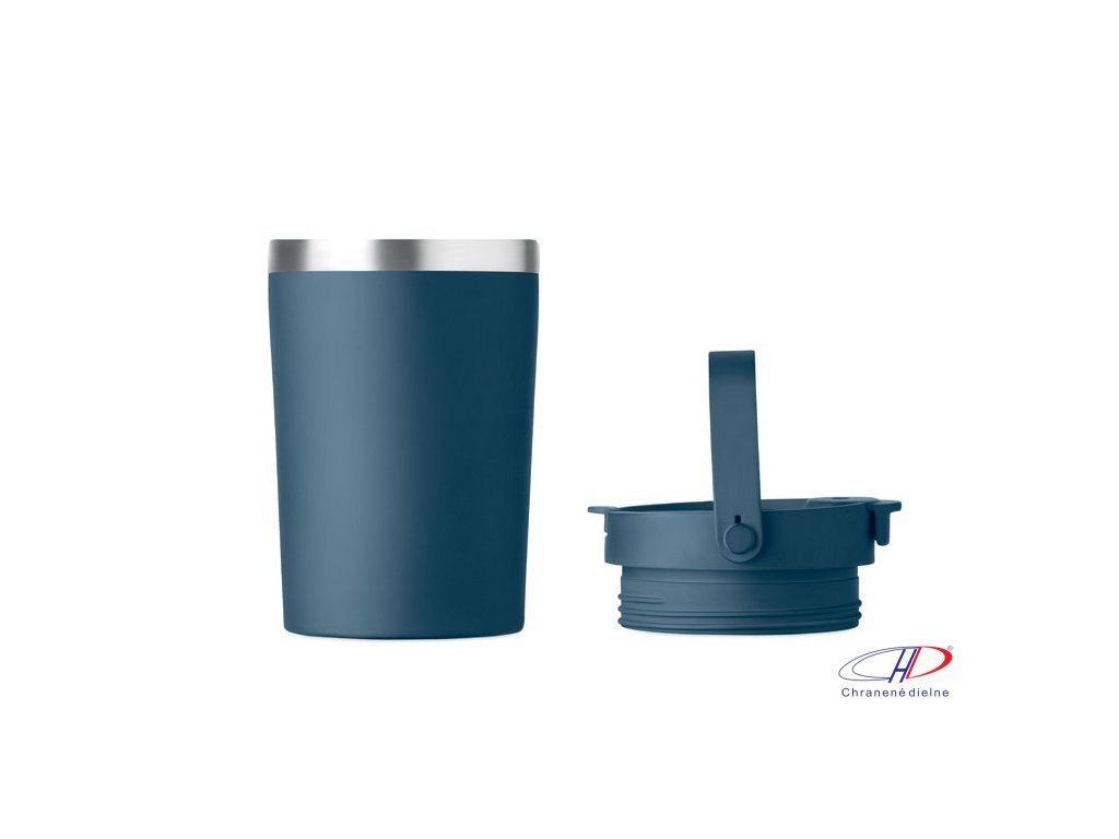 Pohár s dvojitou stenou z recyklovanej nehrdzavejúcej ocele (90 % recyklovanej nehrdzavejúcej ocele a 10 % nehrdzavejúcej ocele) s PP 2-v-1 uzáverom s slamkou. Nepriepustný a odolný. Objem: 350 ml.Dodatočné parametre
