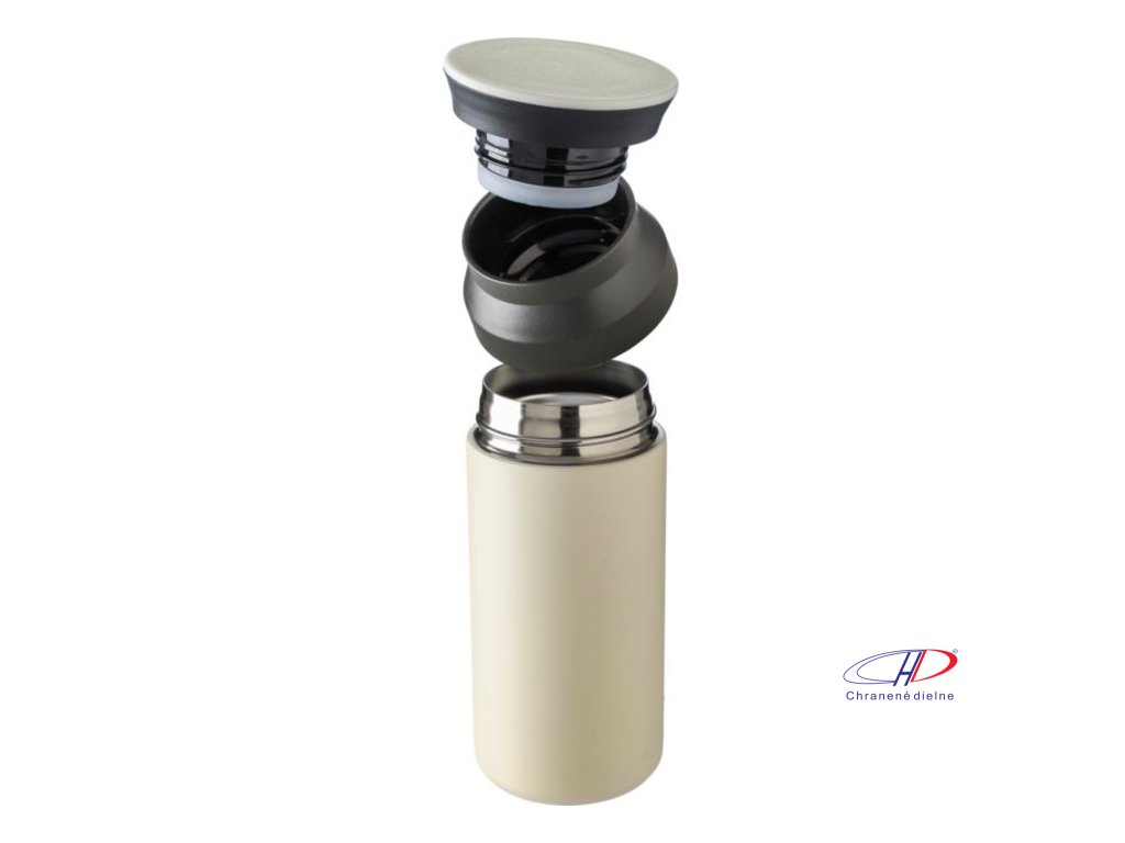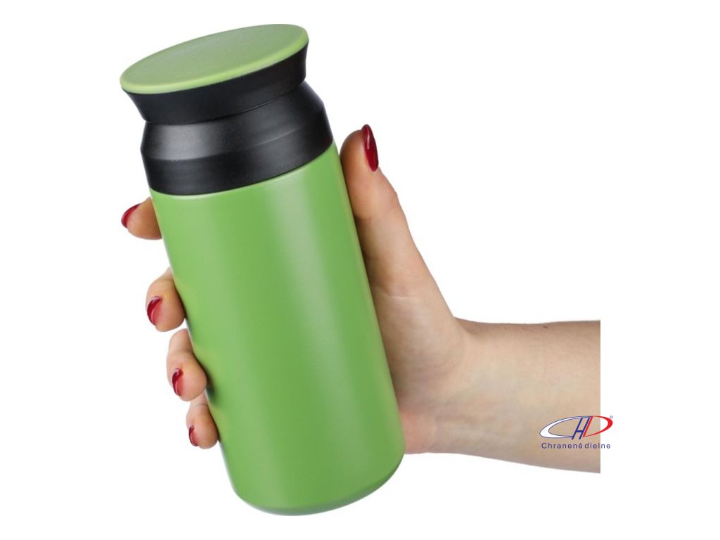 Nerezový dvojstenný vákuový hrnček na pitie (350 ml) s plochým PP vrchnákom. Matne lakované. Udrží obsah horúci 12 hodín a studený 18 hodín. Jednotlivo balené v hnedej kartónovej darčekovej krabičke.Dodatočné parametre