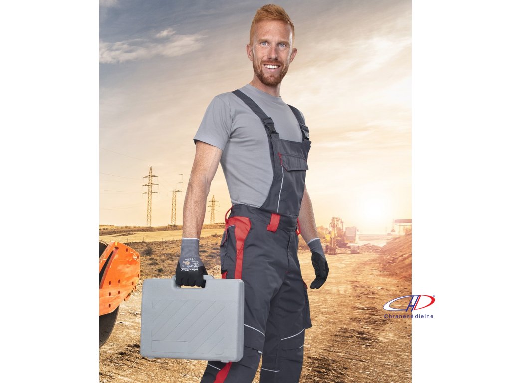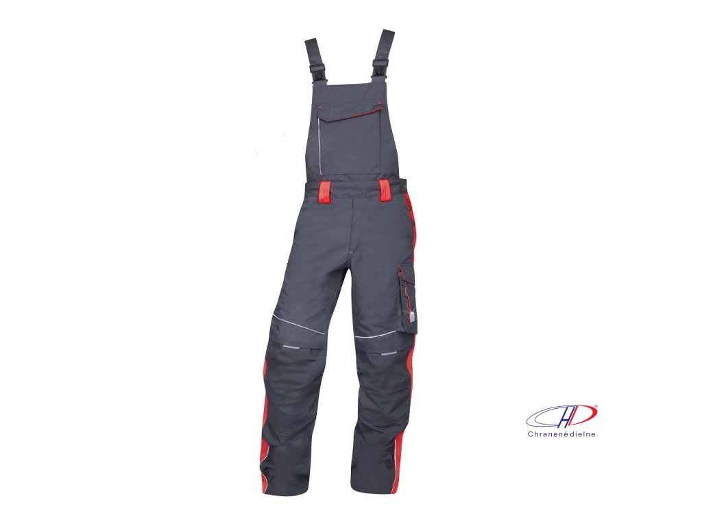 Nohavice s náprsenkou ARDON®NEON predĺžené sivo-červené S