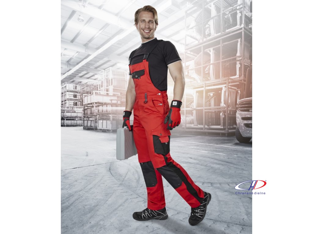 Nohavice s náprsenkou ARDON®PRE100 03 červeno-čierne 46
