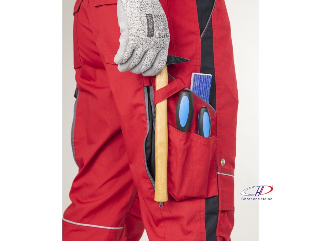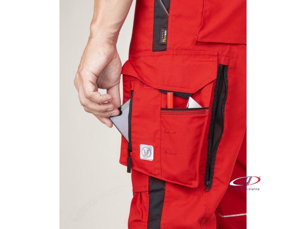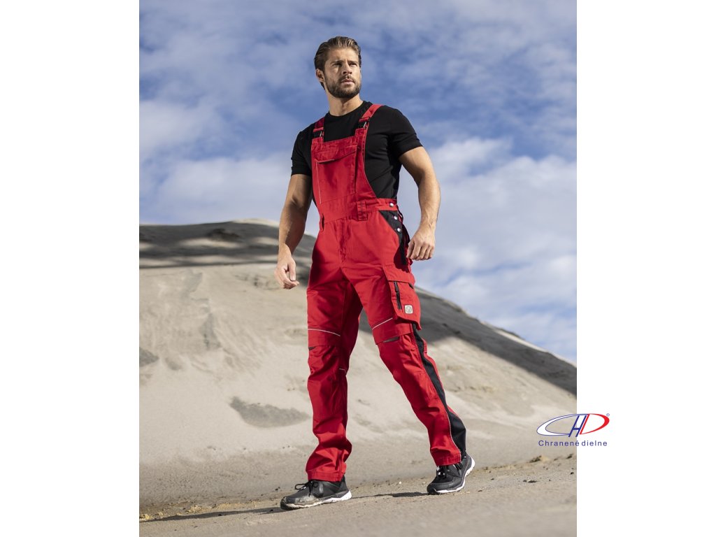 Nohavice s náprsenkou ARDON®URBAN+ červeno-čierne skrátené M
