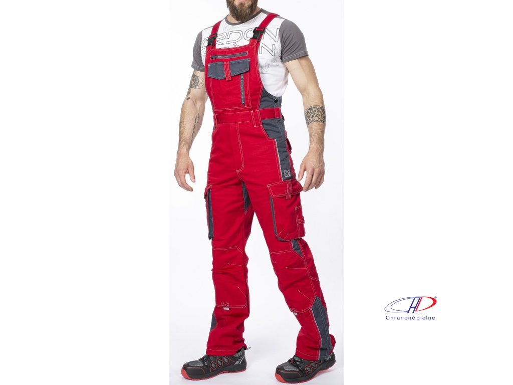 Nohavice s náprsenkou ARDON®VISION 03 červeno-sivé 46