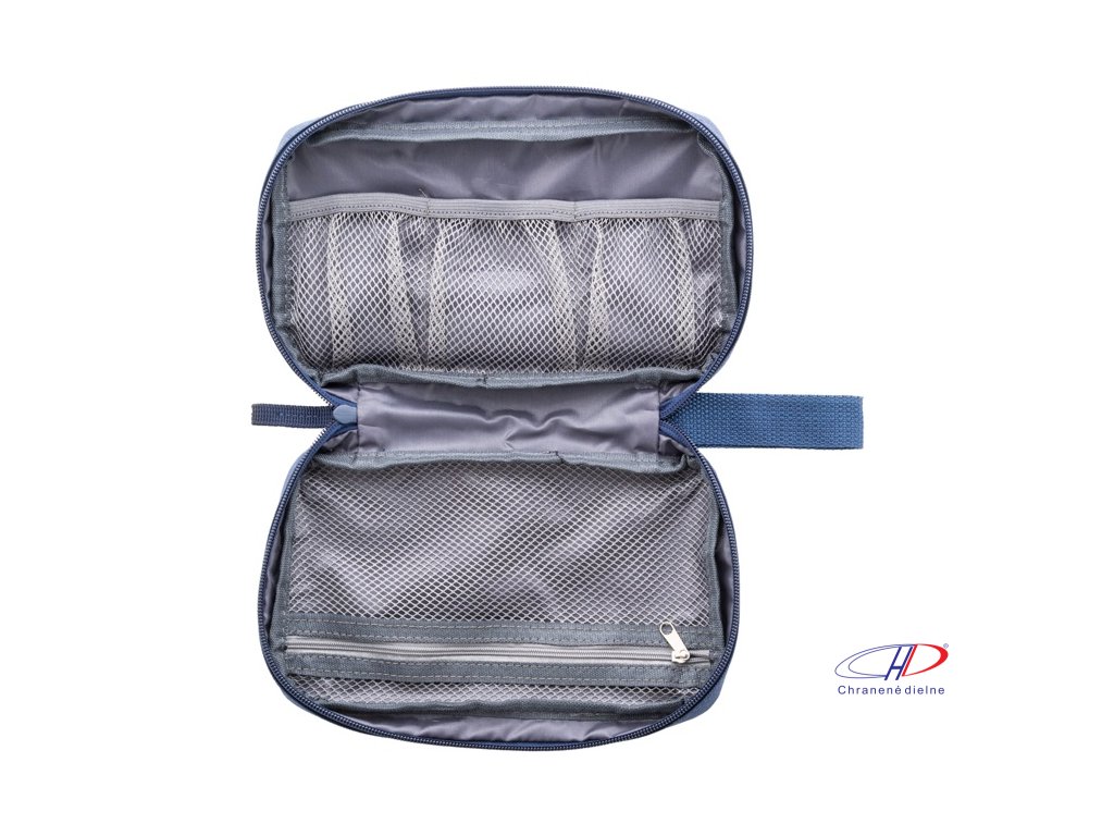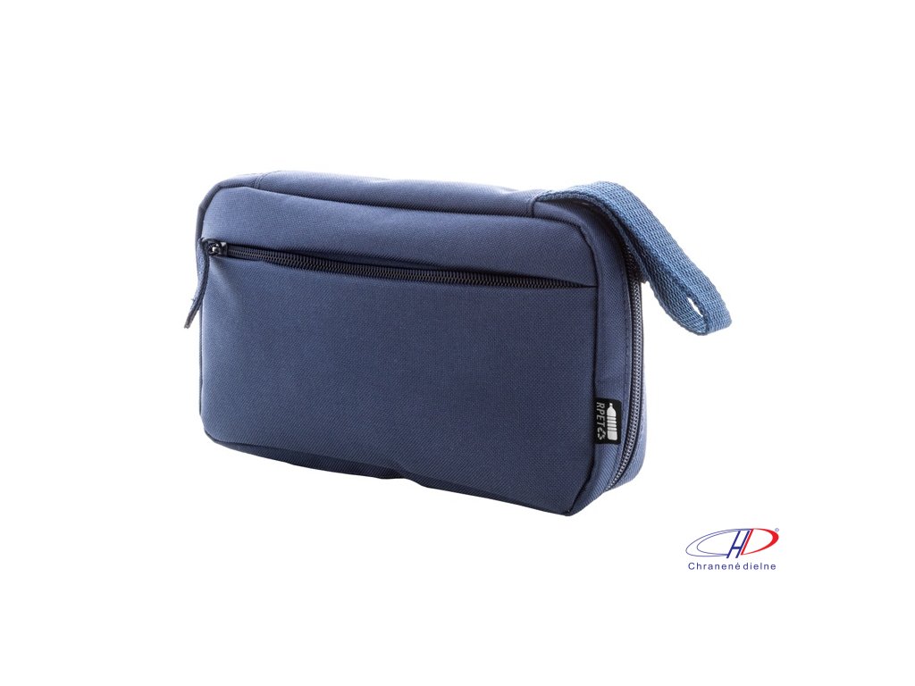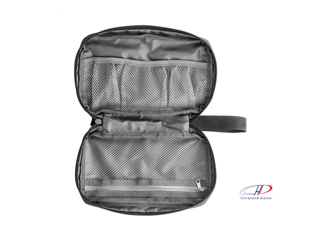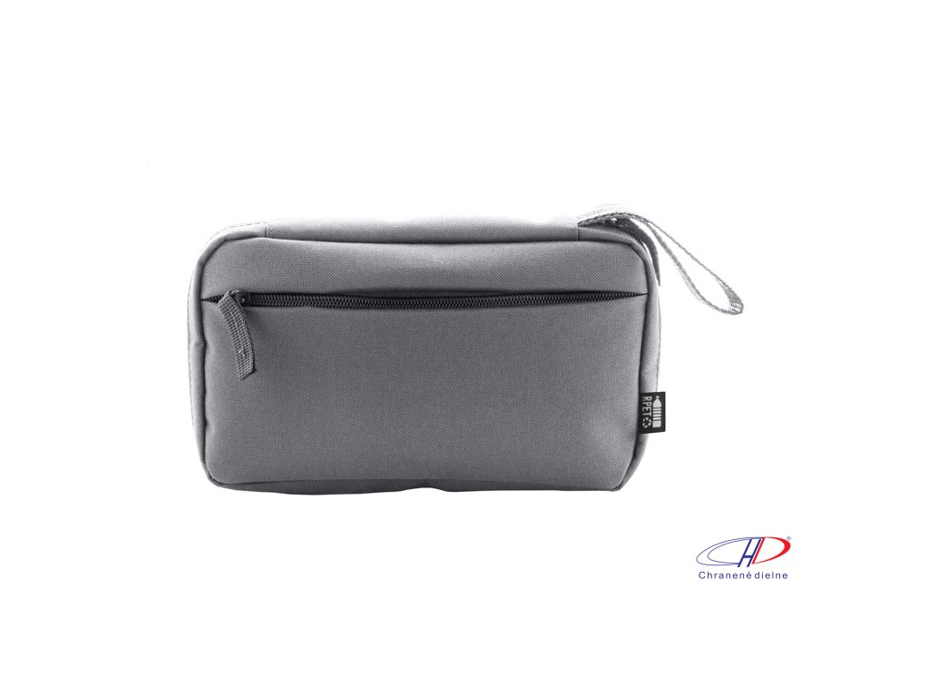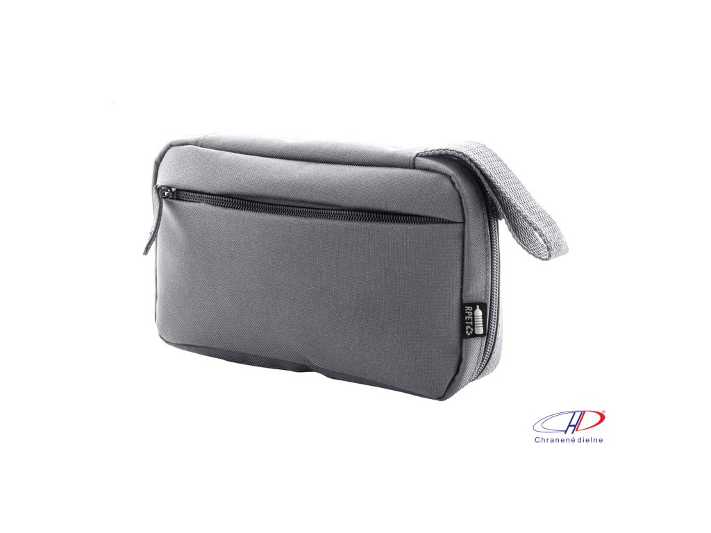 Puzdro na organizér káblov RPET na zips s vnútornými priehradkami zo sieťoviny a predným vreckom na zips. 900D RPET polyester s výrazným štítkom RPET.Dodatočné parametre