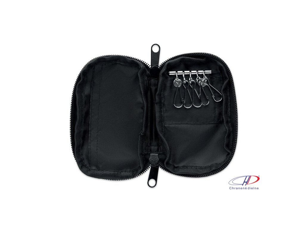 Kľúčenka so zipsom z 300D RPET s podšívkou 210D RPET. S 5 krúžkami na kľúče.
