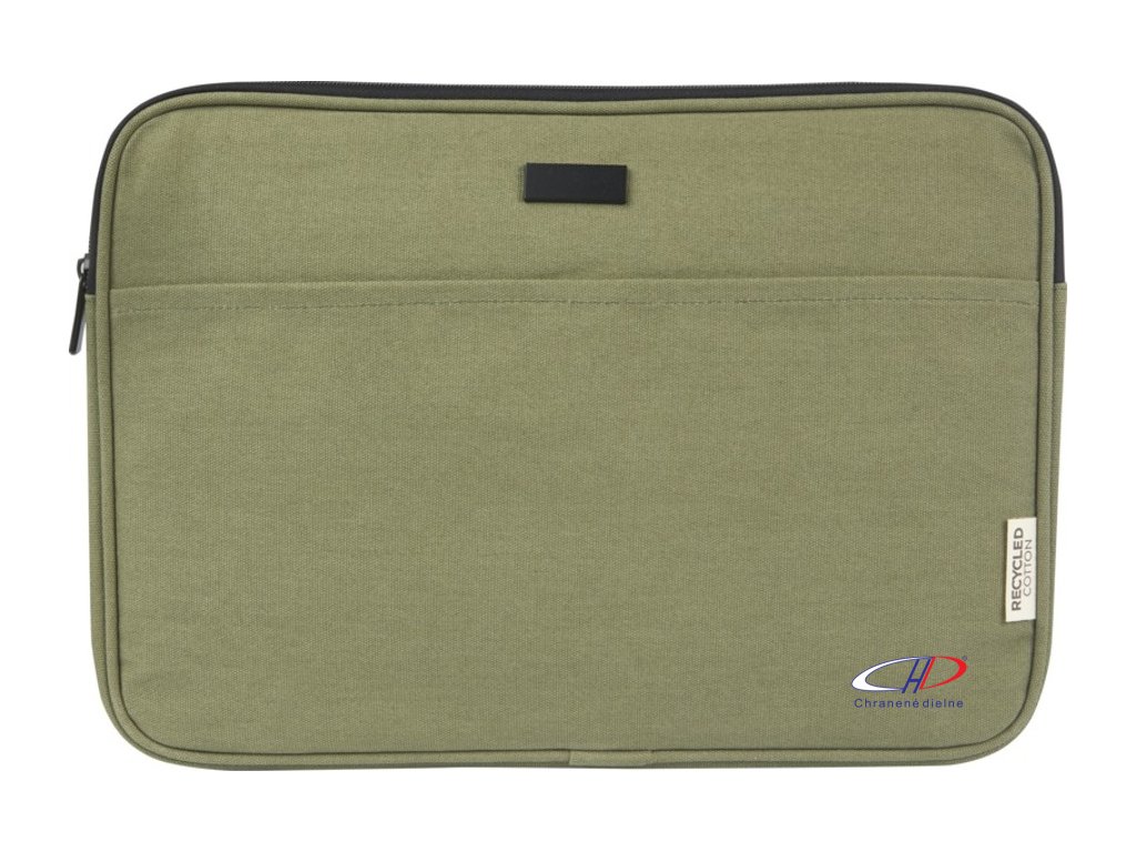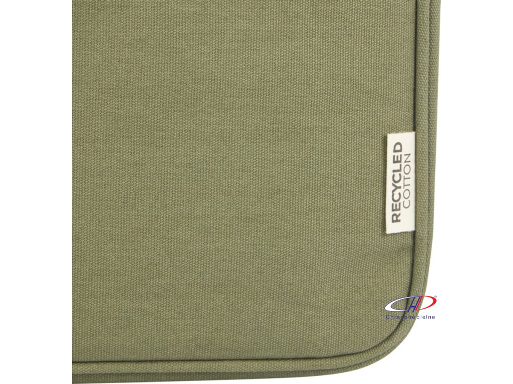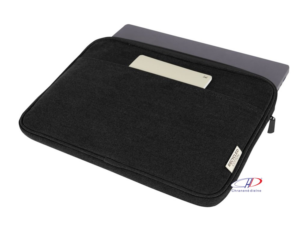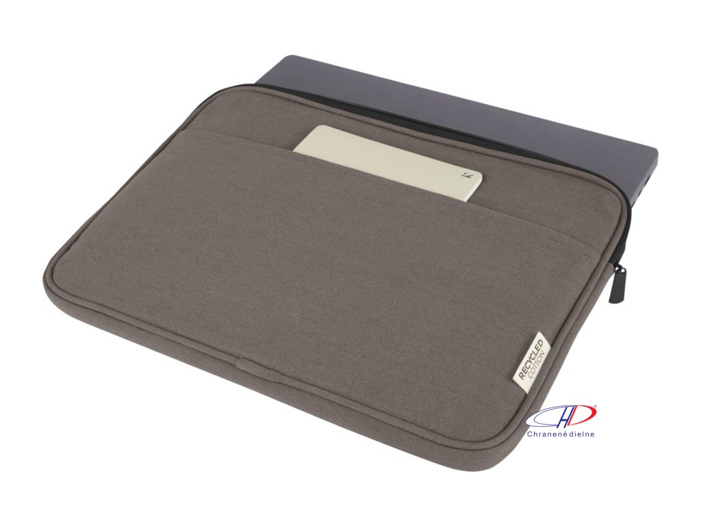 Recyklované plátno GRS a podšívka GRS RPET. 14" obal na notebook má priehradku na notebook a ootvorené predné vrecko so zapínaním na háčik. Dekoratívna kovová doska na logo s jemným a matným povrchom.Dodatočné parametre