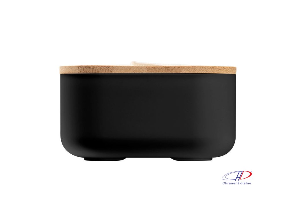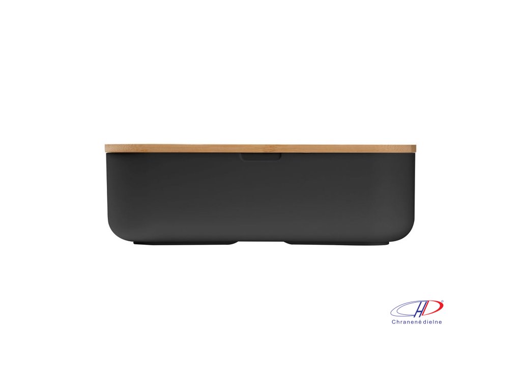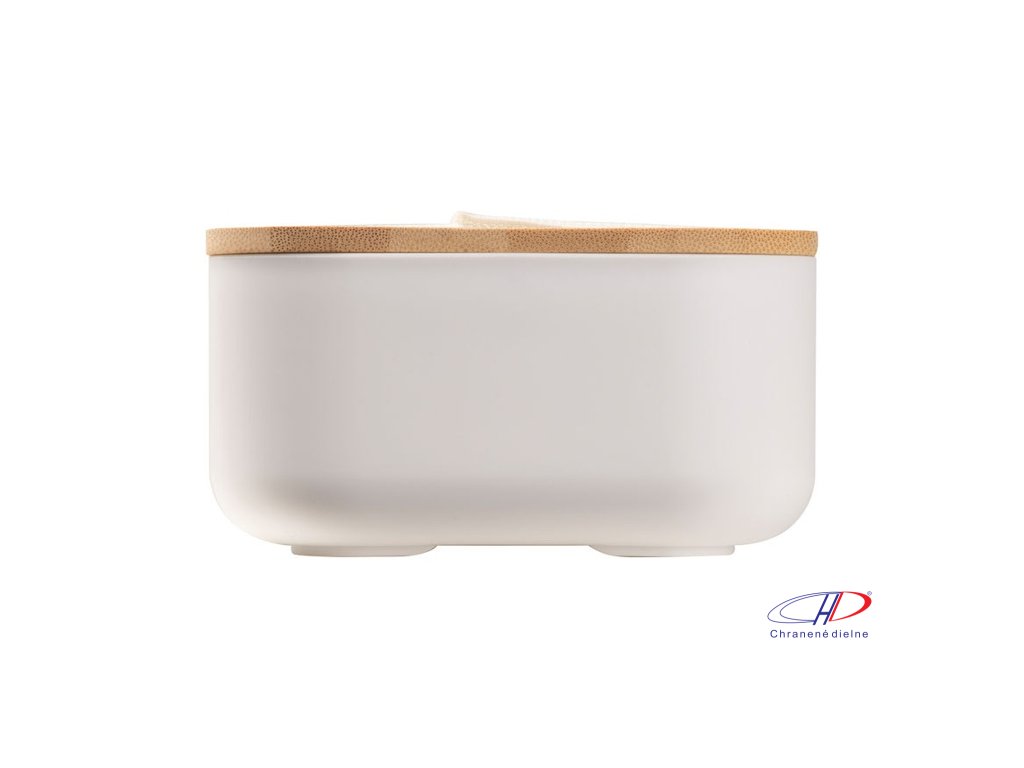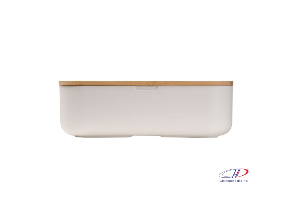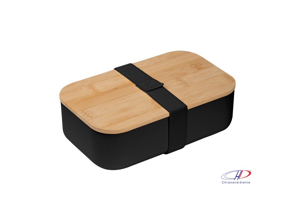Plastový obedár s bambusovým vekom a flexibilnou elastickou páskou pre bezpečné uchytenie.Dodatočné parametre