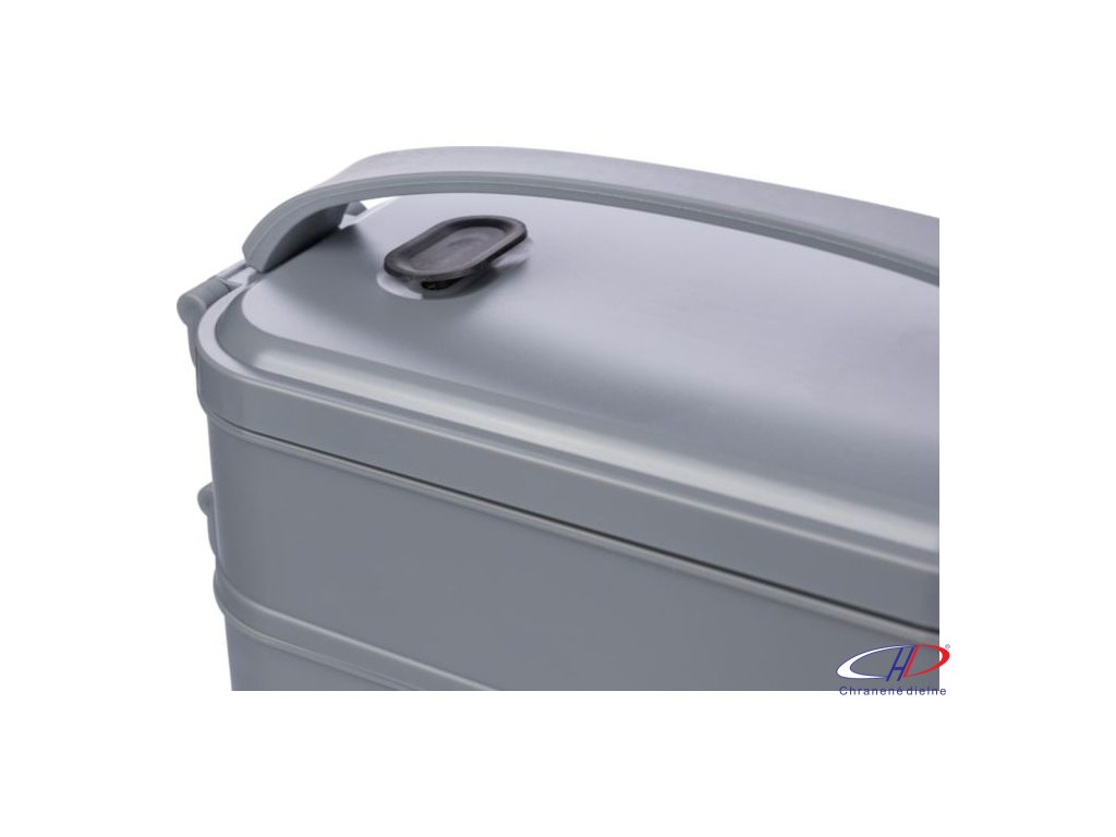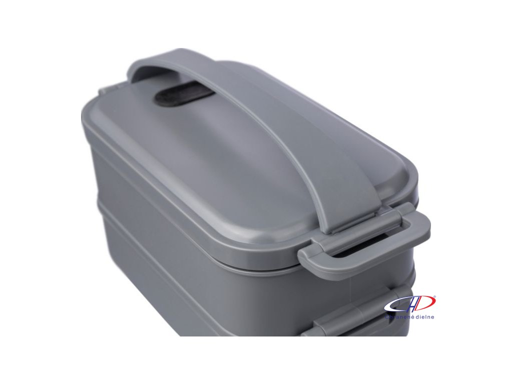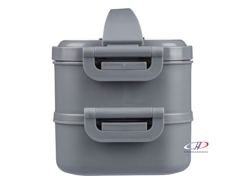 Obedár z polypropylénu s celkovým objemom 1600 ml, rozdelený na dve časti s objemom 800 ml. Má silikónový ventil vhodný do mikrovlnnej rúry, zapínanie na pracku a silikónovú rukoväť na prenášanie. Obedár nie je vhodný do umývačky riadu.Dodatočné parametre