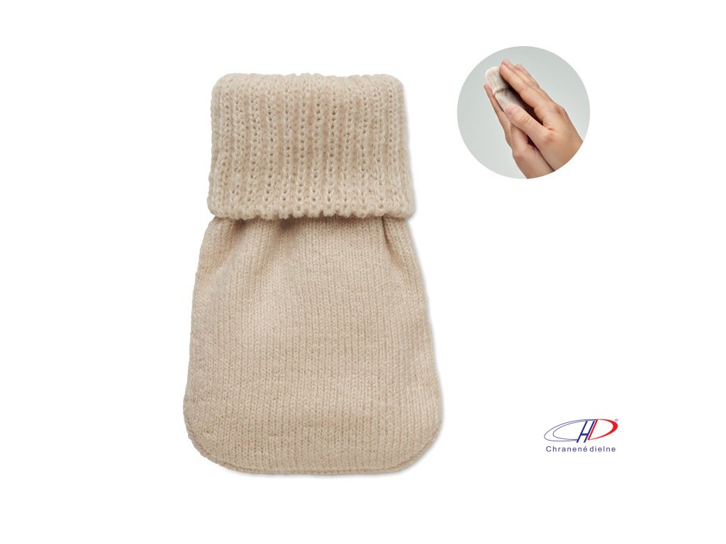 Ohrievač rúk z pleteného polyesteru. Súčasťou balenia je okamžitá tepelná podložka z PVC, ktorá sa aktivuje stlačením kovovej platničky vo vnútri. Opakovane použiteľná ponorením podložky do horúcej vody.Dodatočné parametre