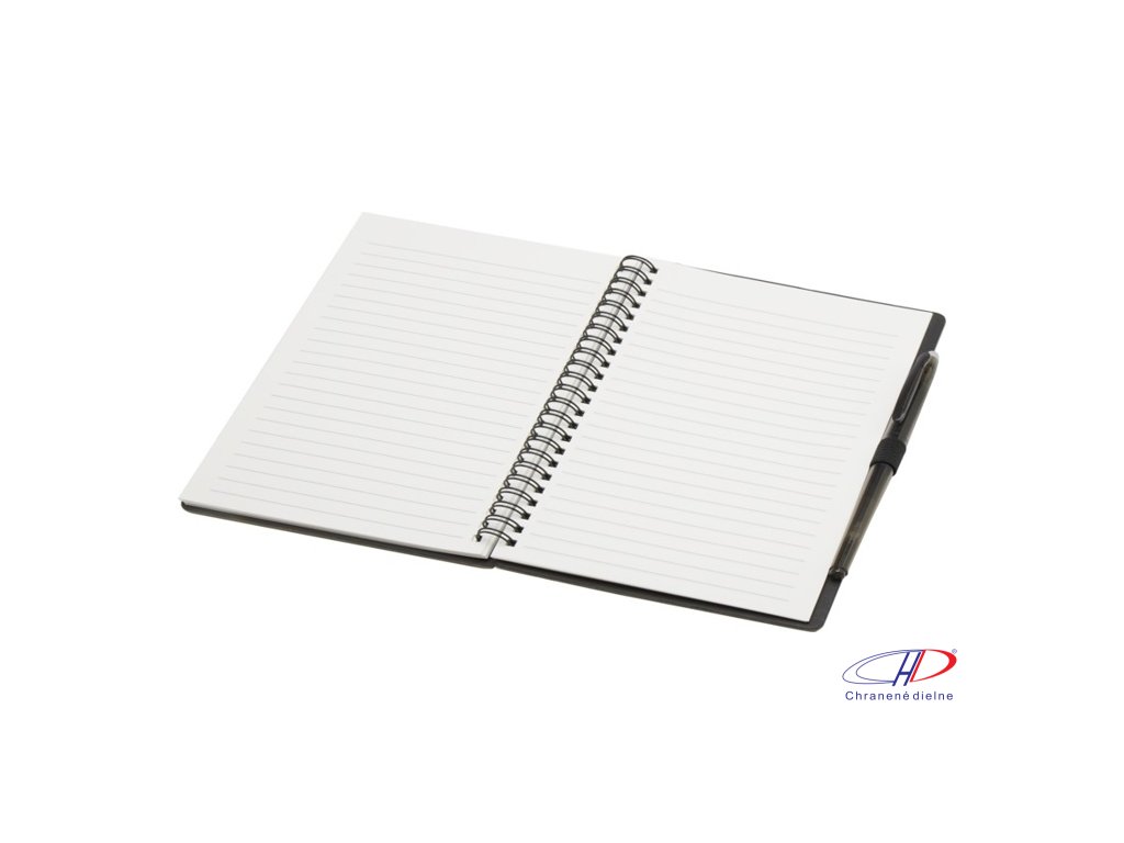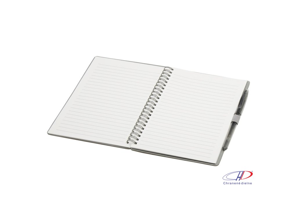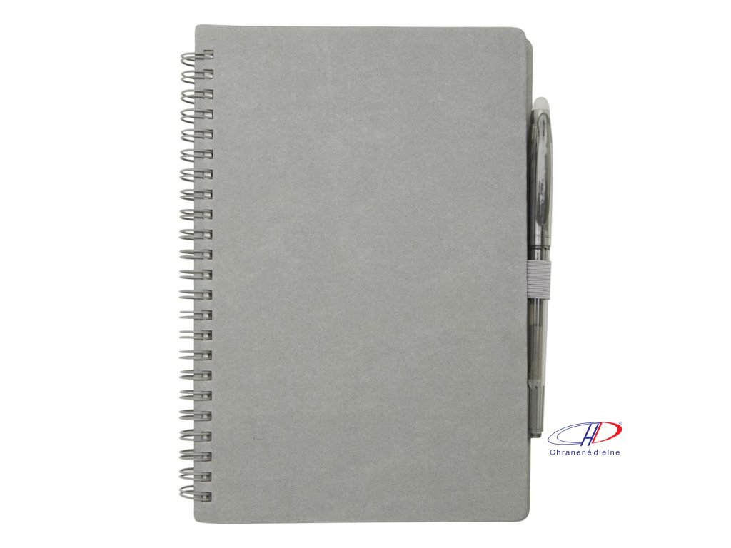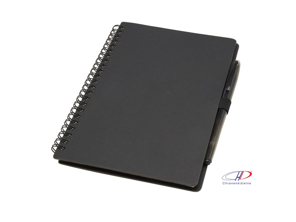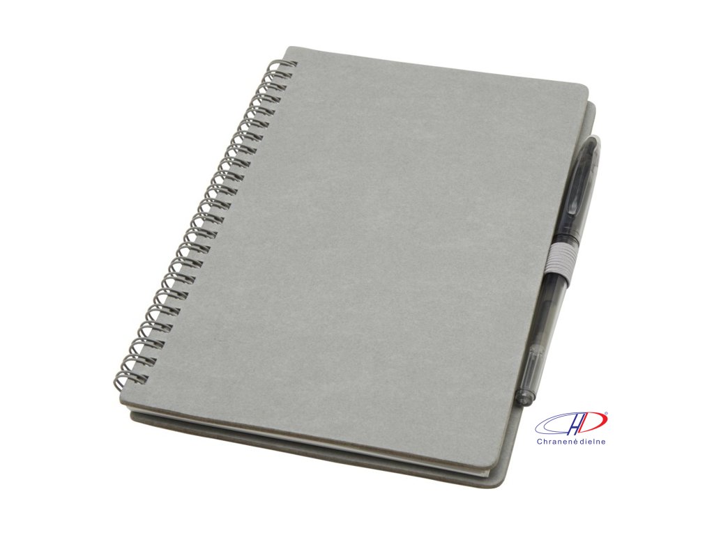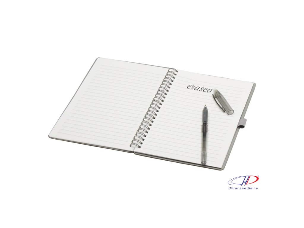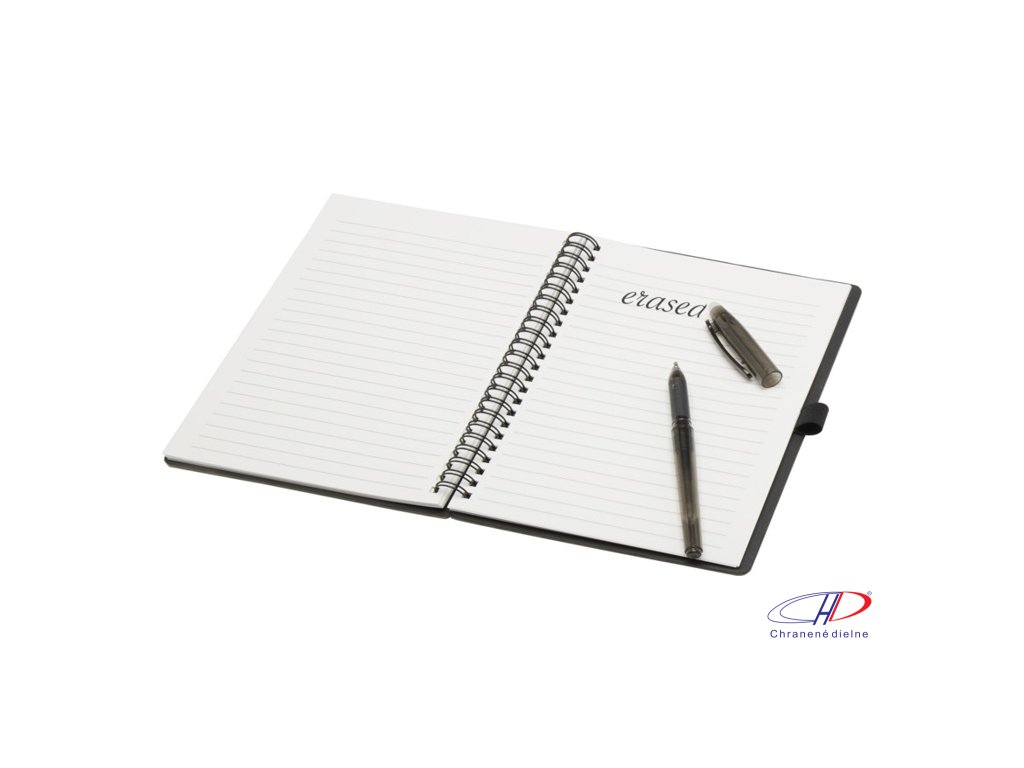 Sada pera a zápisníka z kamenného papiera na opakované použitie. Obálka z lepenky, zaoblené rohy a 32 listov linkovaného papiera 120 g/m2. Na zadnej strane vrecko s čiernou handričkou. Mazacie pero z recyklovaného plastu s bielou gumou a čiernou náplňou.Dodatočné parametre