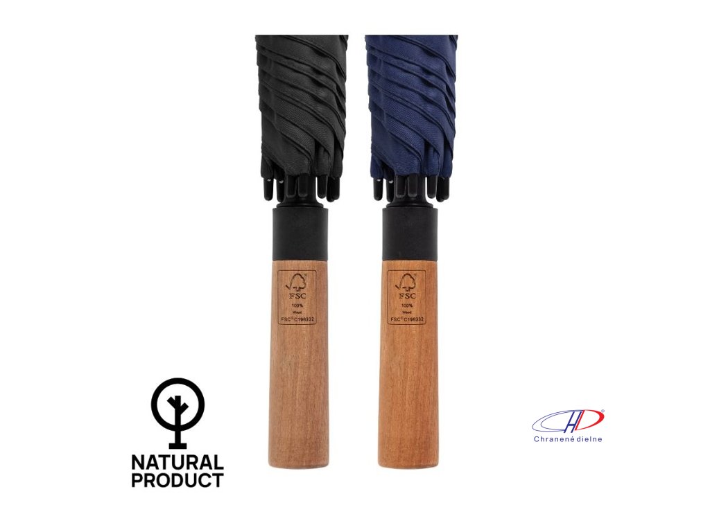 Recyklovaný dáždnik Tony 30" s rukoväťou z luxusného akáciového dreva. S kovovou tyčou a rebrom zo skleného vlákna. S funkciou odolnou proti vetru. Automatické otváranie a ručné zatváranie. Indikátoro AWARE™ overuje použitie recyklovaných materiálovDodatočné parametre