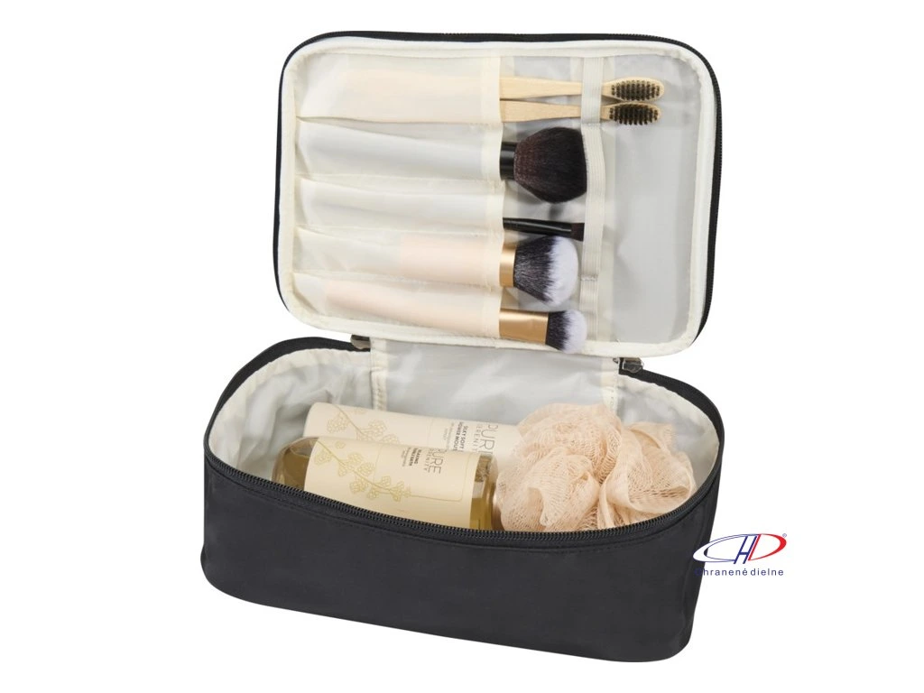Organizér na make-up Muse je ideálny na cesty a umožňuje prehľadne a kompaktne uložiť štetce, pudrenky, prípravky na starostlivosť o pleť a ďalšie kozmetické nevyhnutnosti. Je vyrobený z recyklovaného polyesteru s certifikáciou GRS.Dodatočné parametre
