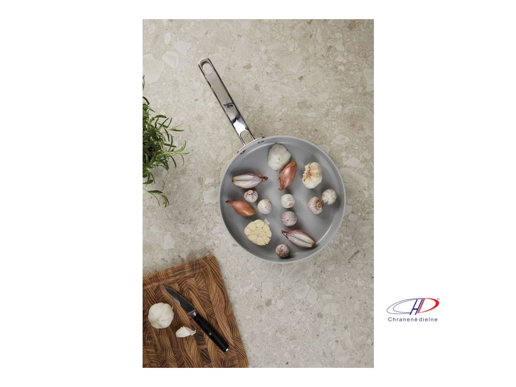 Keramický nepriľnavý povrch pre ľahké varenie a čistenie, nerezová rukoväť a nerezové dno. Táto panvica je kompatibilná so všetkými varnými doskami, vrátane použitia v rúre (max 250 ° C). Podiel recyklátu: 69%.Dodatočné parametre