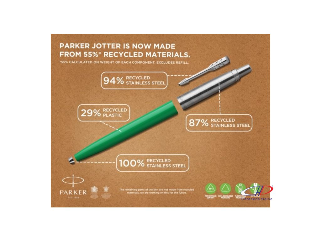 Guľôčkové pero Parker Jotter Originals z recyklovaného materiálu s klikacím mechanizmom. Vrátane darčekovej krabičky. Modrá náplň.Dodatočné parametre