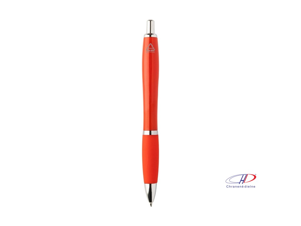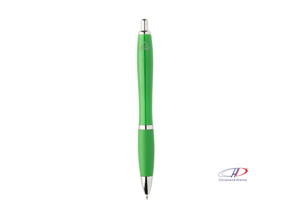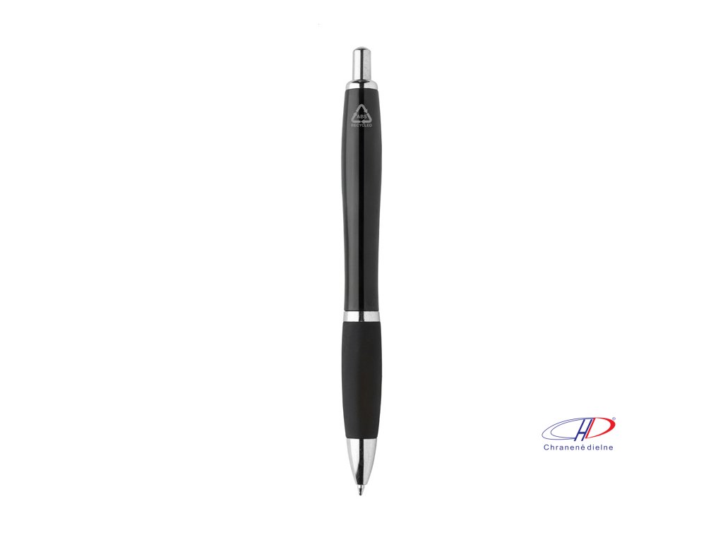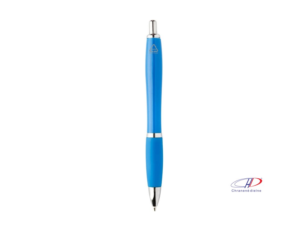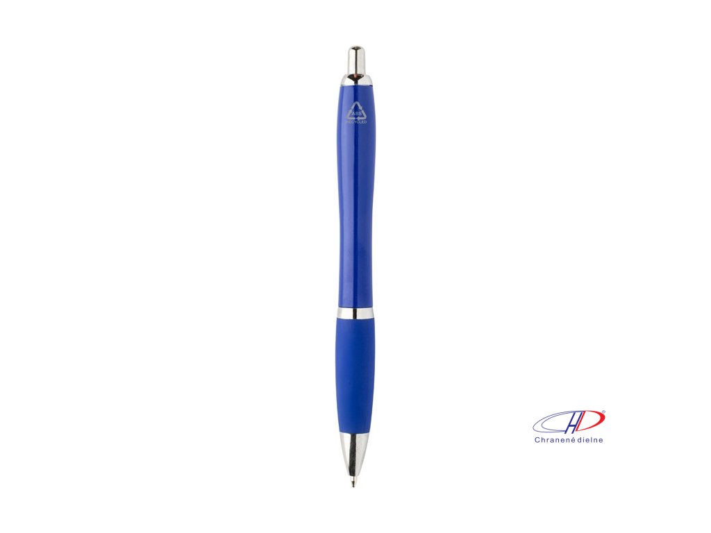 Guľôčkové pero z recyklovaného ABS plastu s úchopom v zodpovedajúcej farbe a chrómovanými časťami. S modrou náplňou.Dodatočné parametre