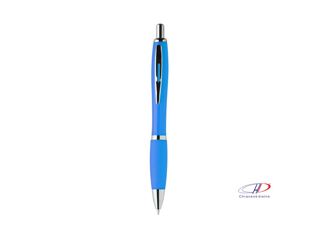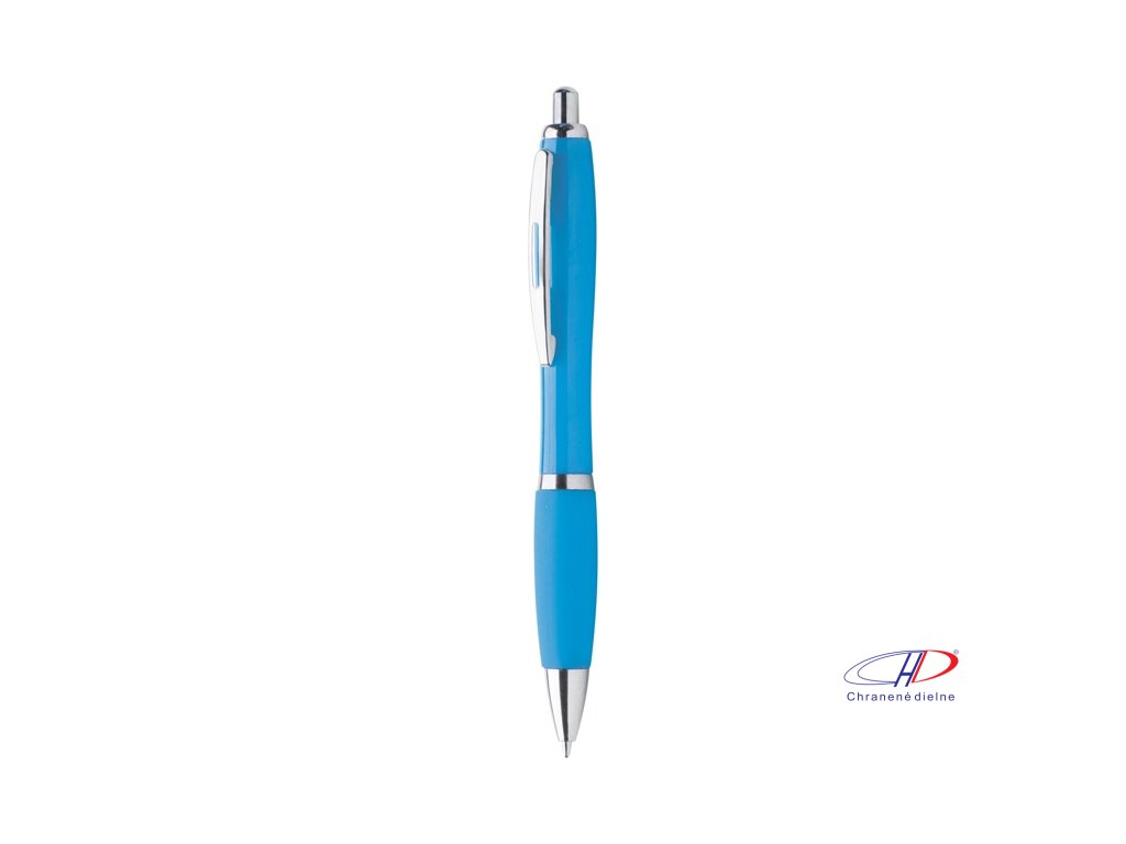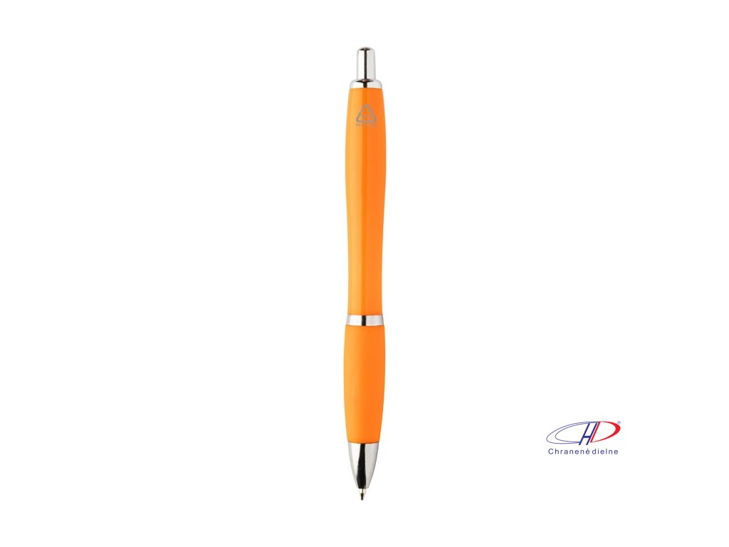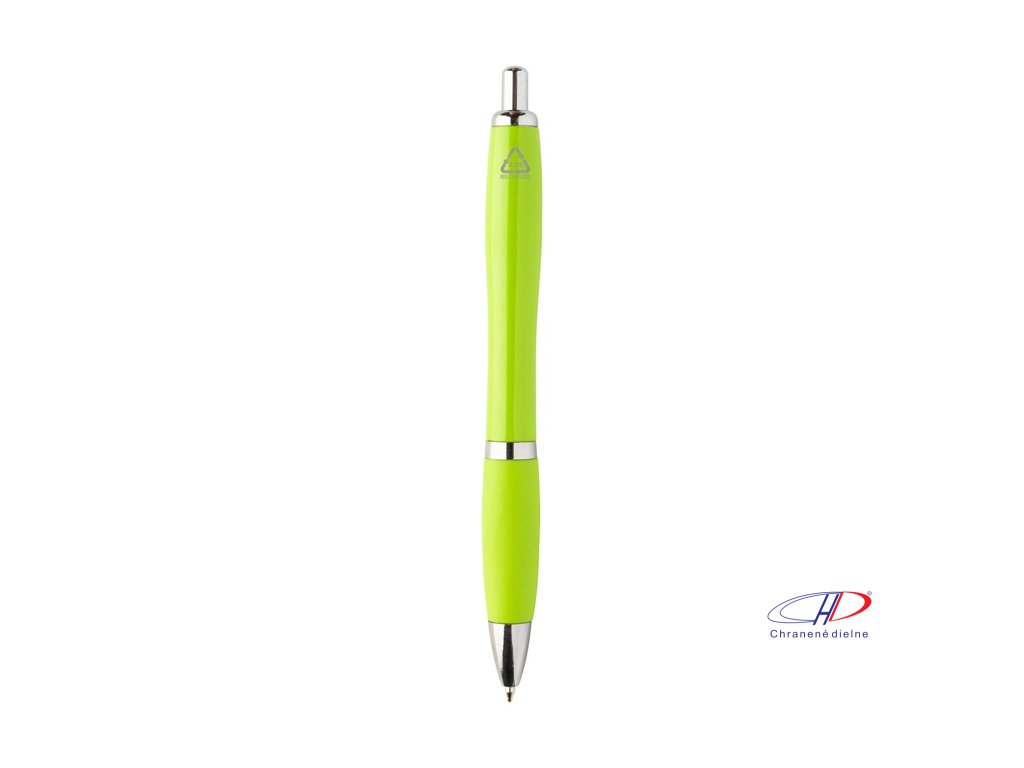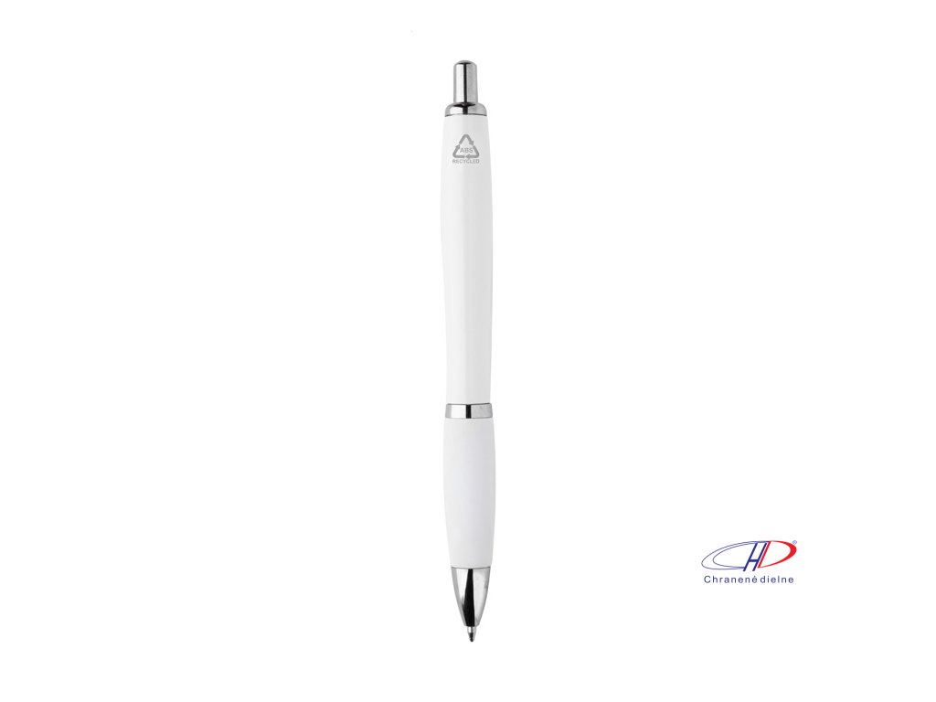 Guľôčkové pero z recyklovaného ABS plastu s úchopom v zodpovedajúcej farbe a chrómovanými časťami. S modrou náplňou.Dodatočné parametre