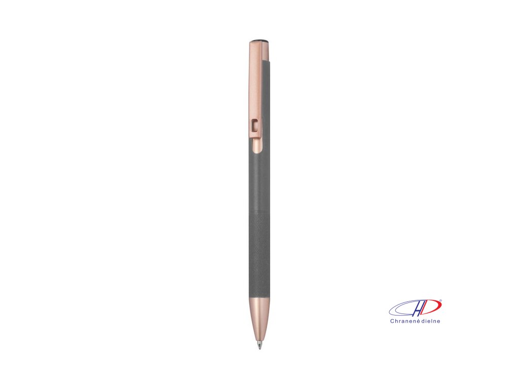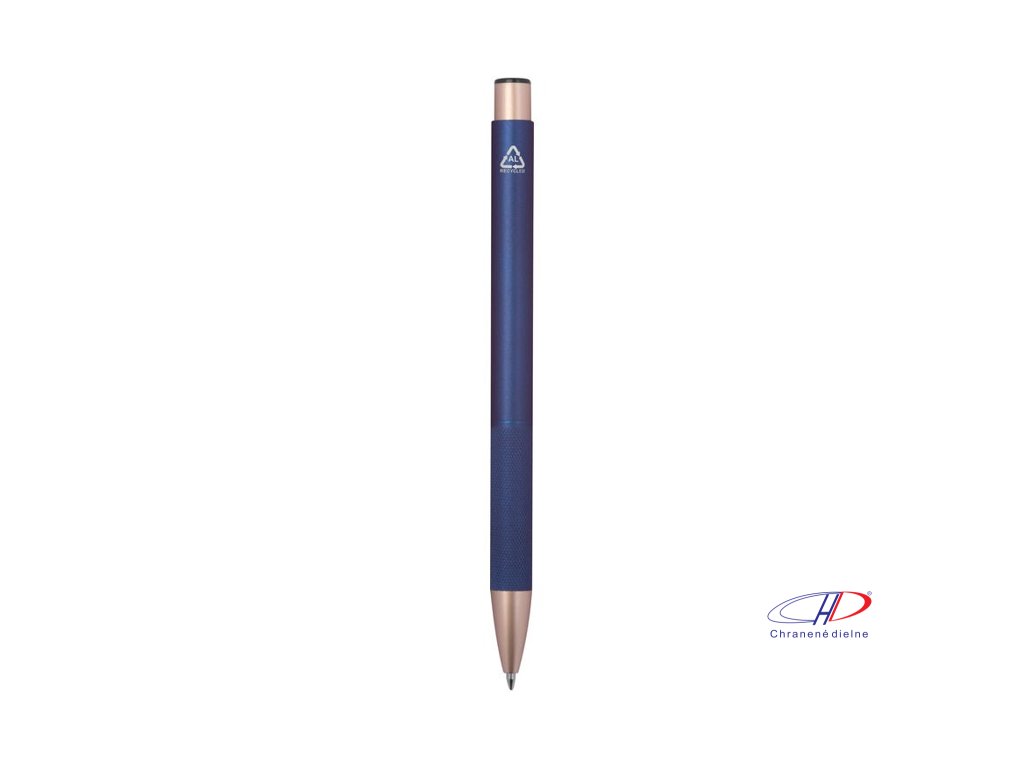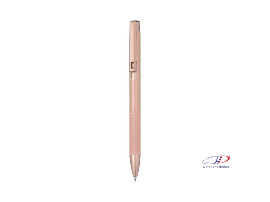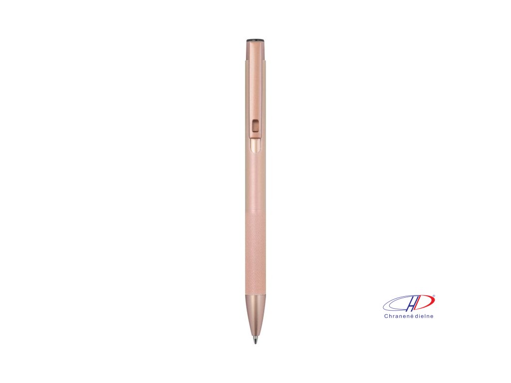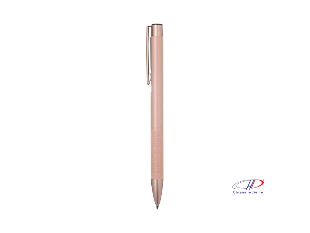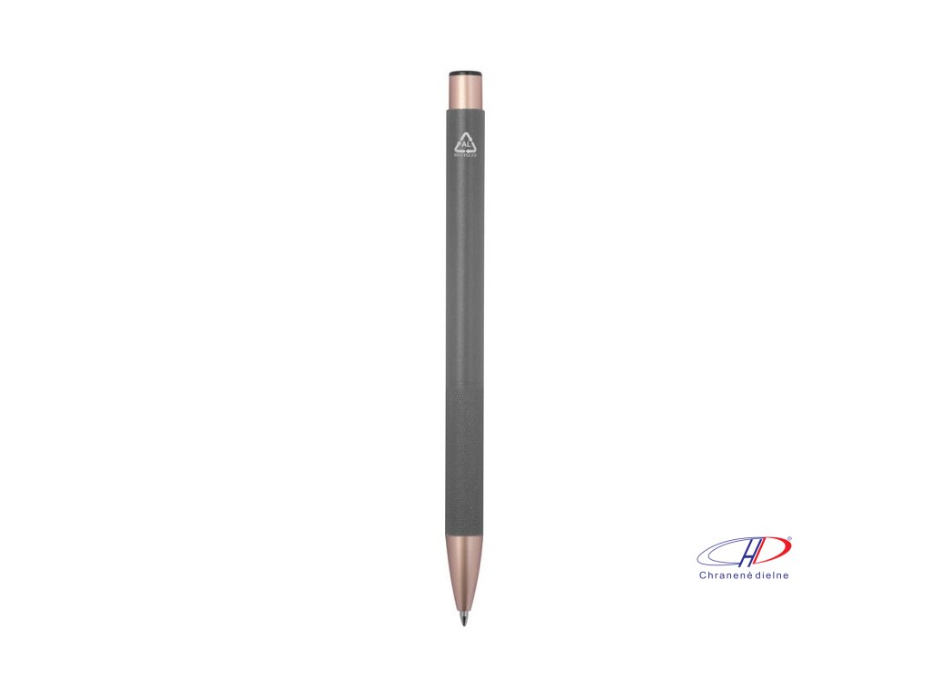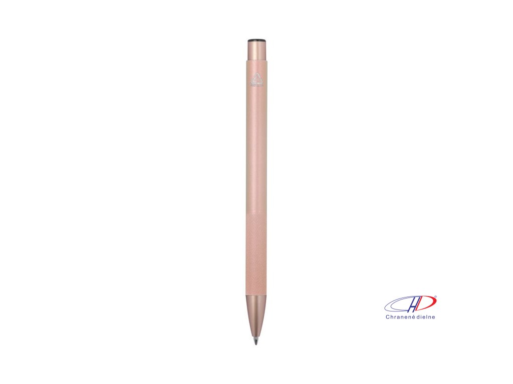 Guľôčkové pero z recyklovaného hliníka s matným povrchom, ružovo-zlatými detailmi, modrou náplňou a úchopom s diamantovým vzoromDodatočné parametre