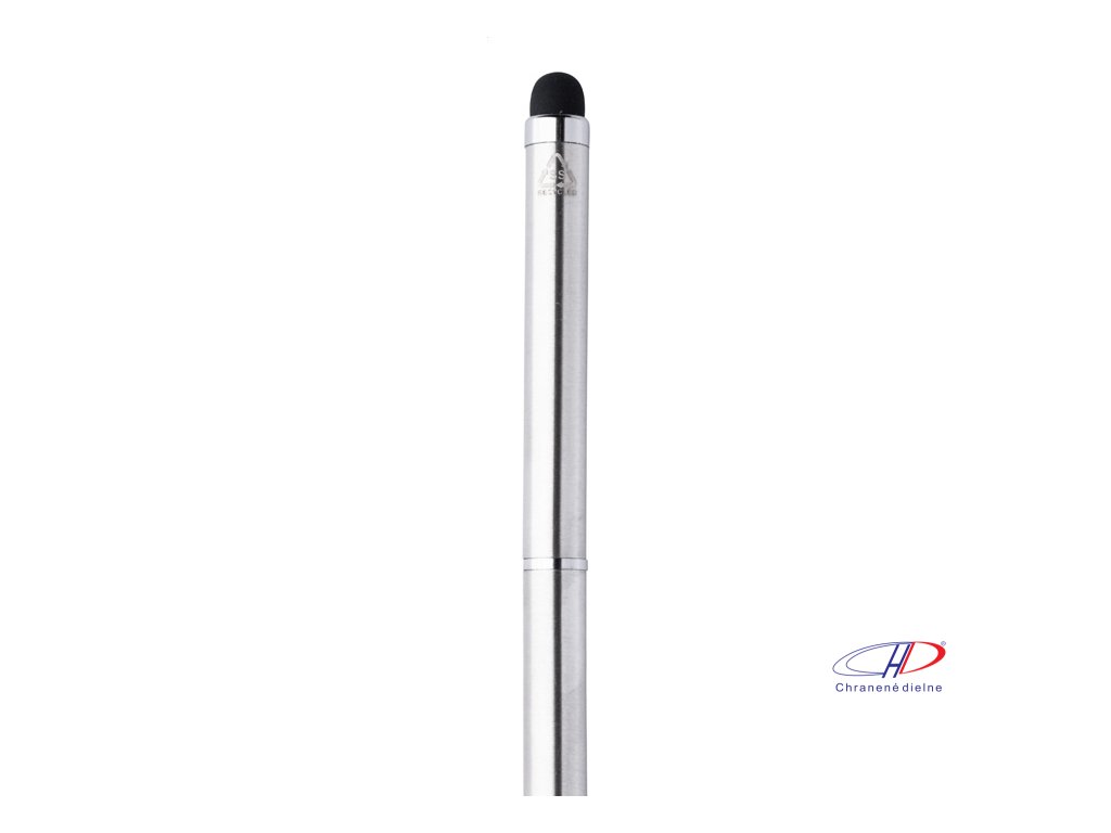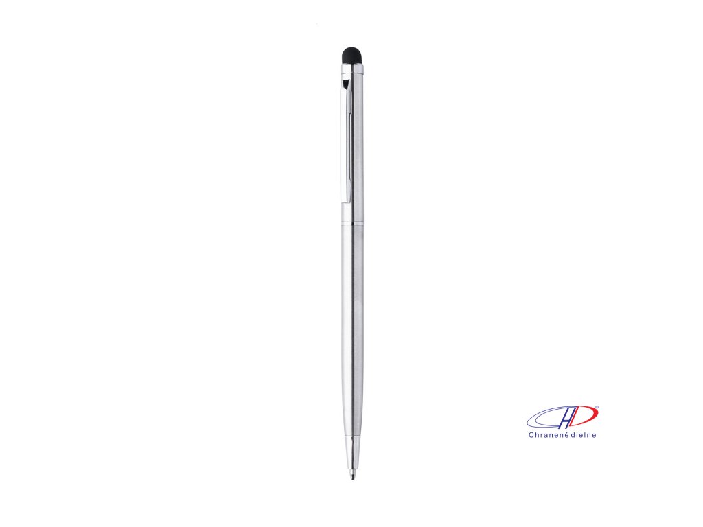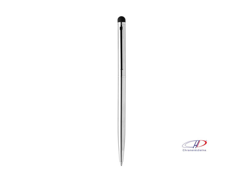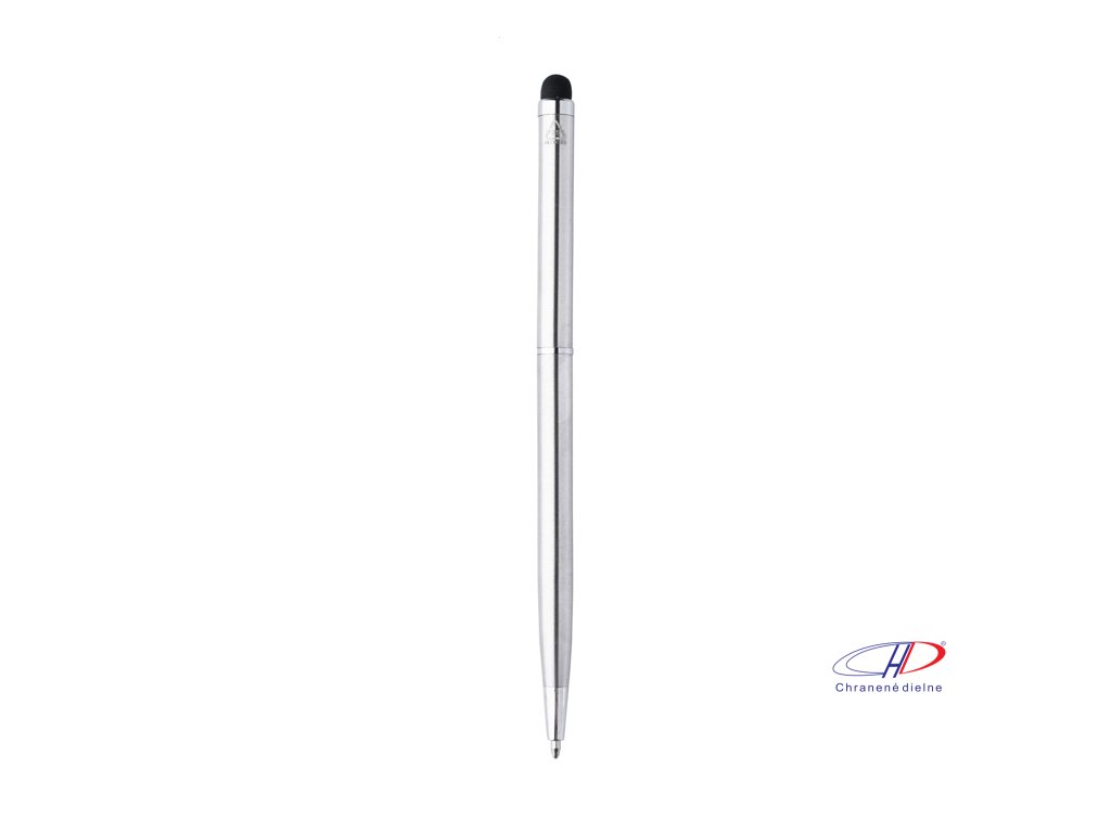 Recyklované guľôčkové a dotykové pero z nerezovej ocele s chrómovanými časťami. S modrou náplňou.Dodatočné parametre