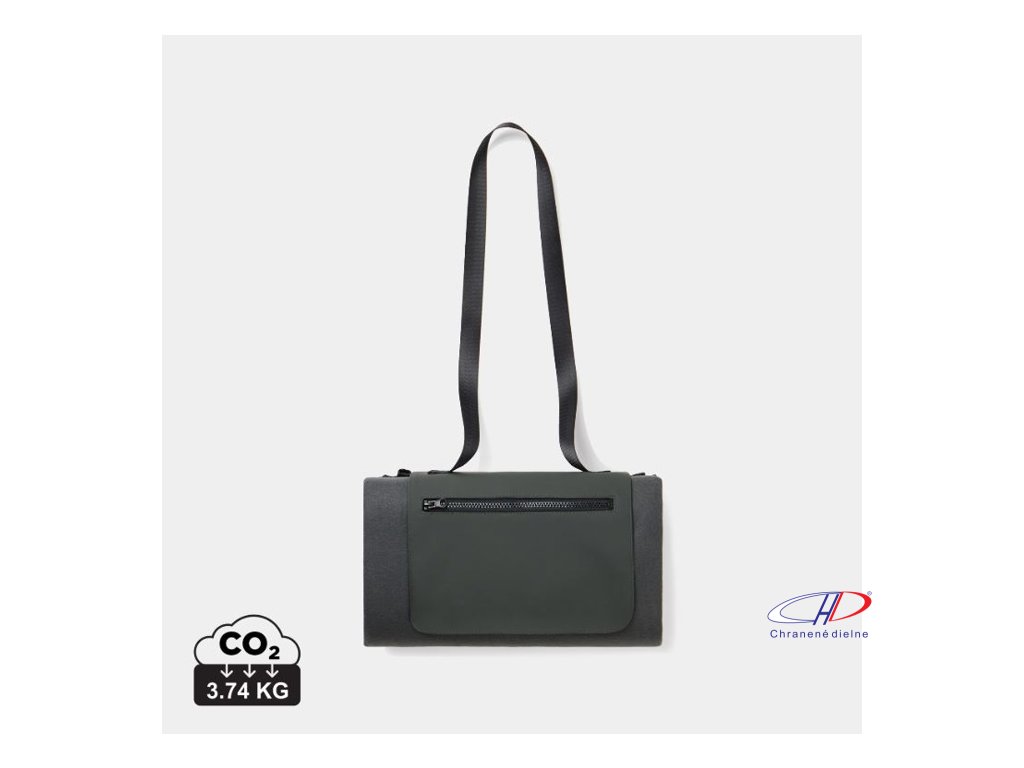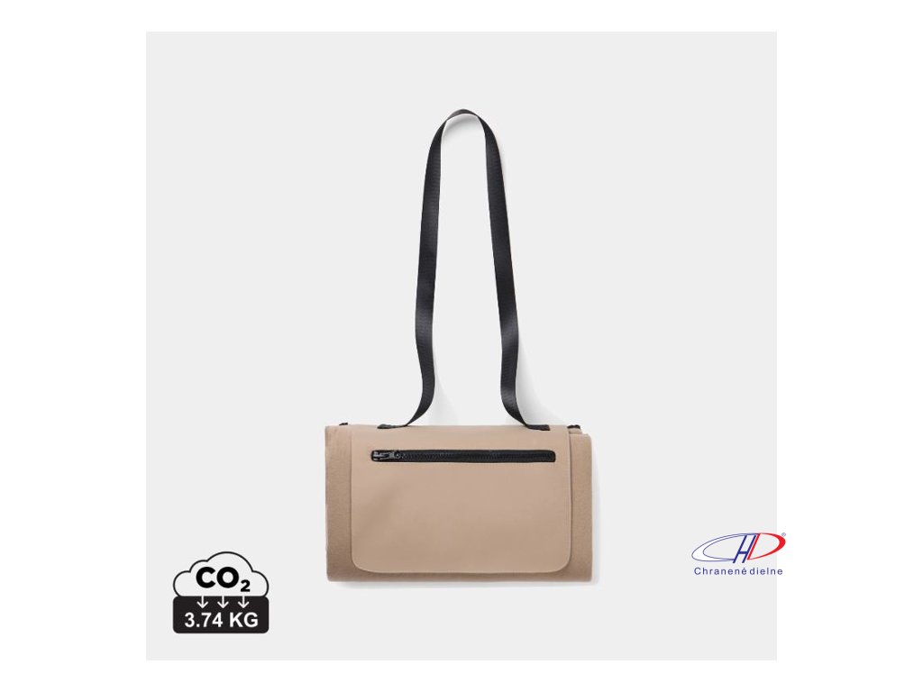 Deka má mäkký flísový povrch a vodoodolnú spodnú vrstvu z PEVA. Vybavená dlhým popruhom pre jednoduché nosenie a predným vreckom na zips. Veľkosť: 150x130 cm. Certifikované podľa RCS. Tento produkt obsahuje 47 % RCS-certifikovaného RPET.Dodatočné parametre