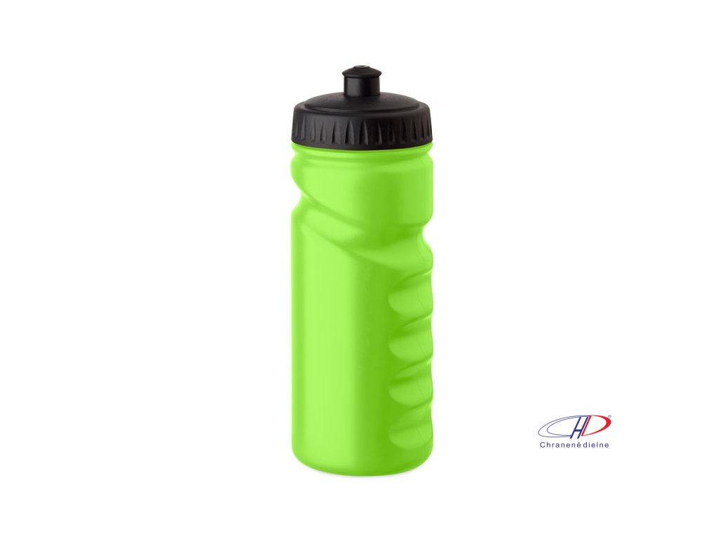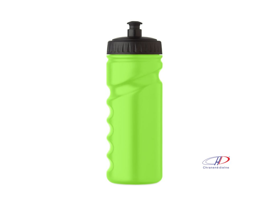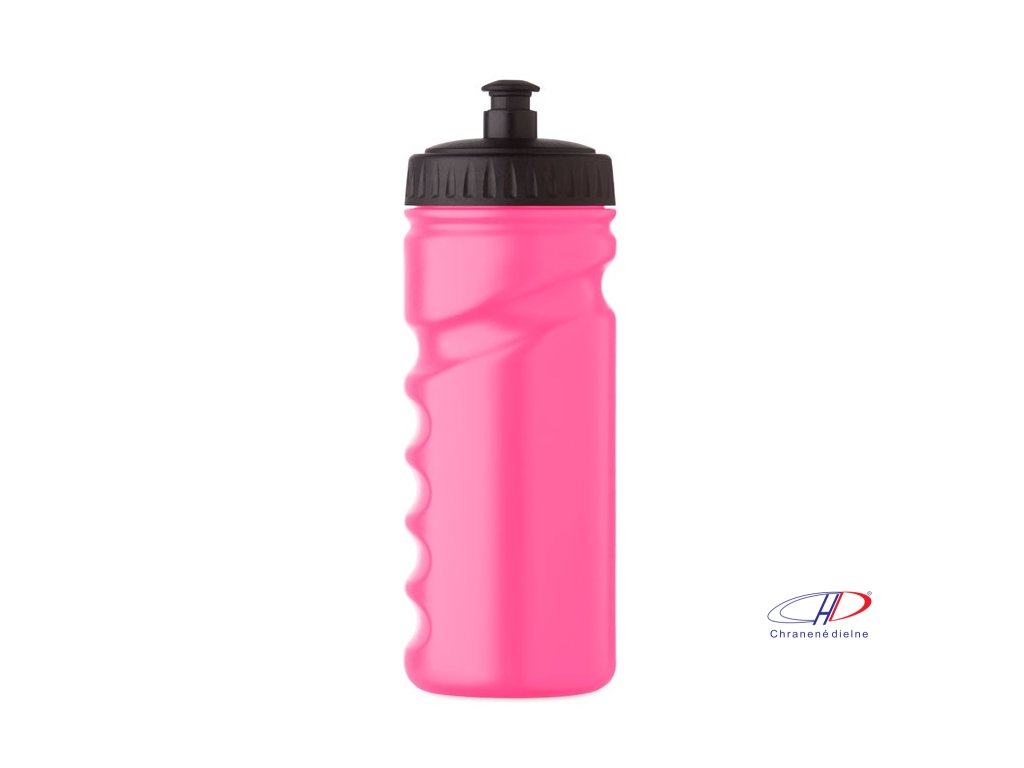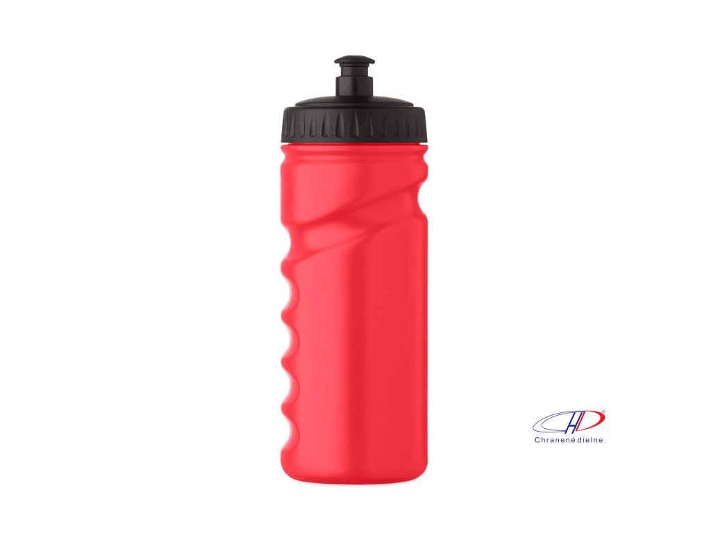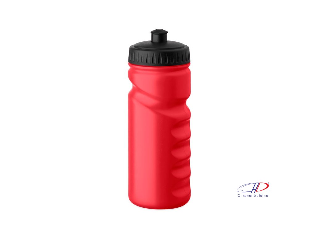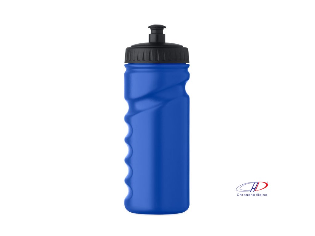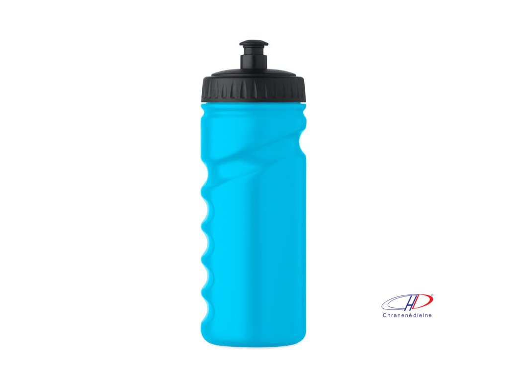 Športová fľaša na pitie s praktickým uchopením z pevného PE plastu. Objem: 500 ml. Nepriepustná.